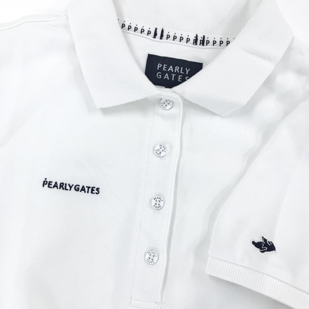 パーリーゲイツ 半袖ポロシャツ 白 ロゴネイビー フライングラビット レディース 0(S) ゴルフウェア PEARLY GATES