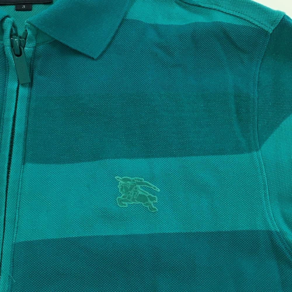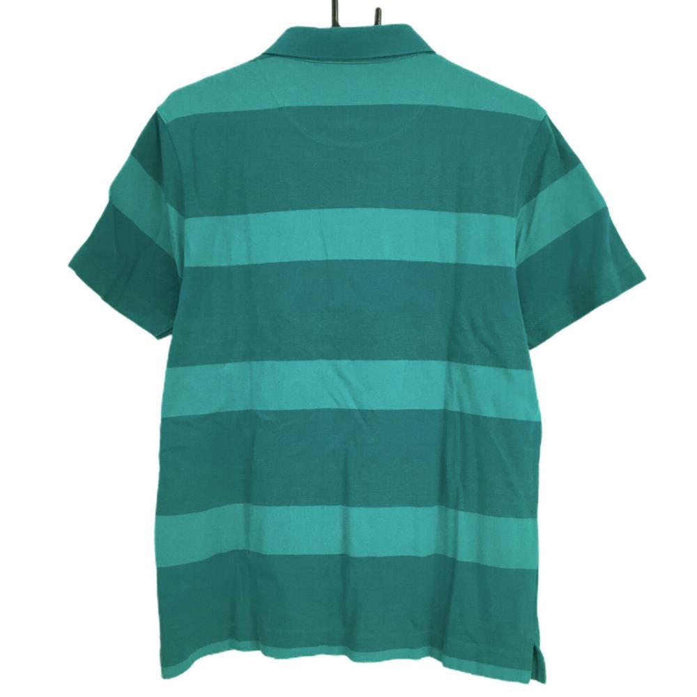 バーバリーゴルフ 半袖ポロシャツ ブルーグリーン系 太ボーダー ハーフジップ メンズ 3(L) ゴルフウェア BURBERRY GOLF