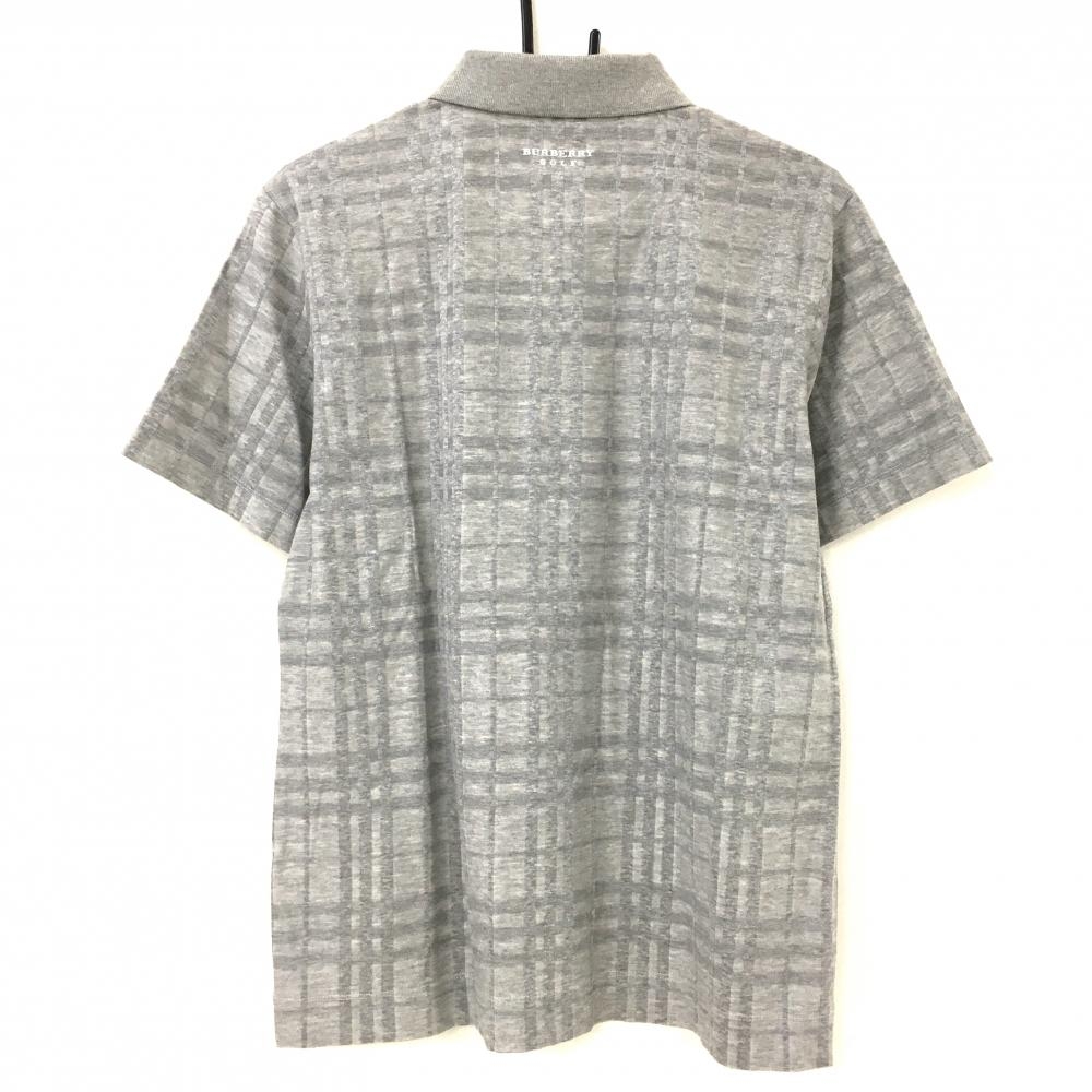 【超美品】バーバリーゴルフ 半袖ポロシャツ グレー チェック ハーフジップ メンズ L ゴルフウェア BURBERRY GOLF
