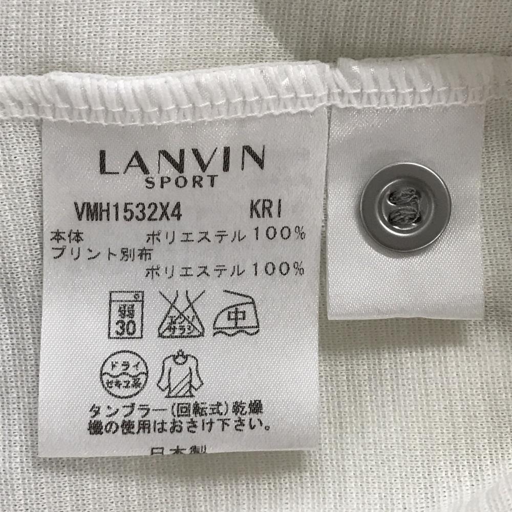 【美品】ランバンスポール 半袖ポロシャツ 白×ライトグリーン 胸ポケット口・襟裏柄胸ポケット付 メンズ 40(L) ゴルフウェア LANVIN SPORT