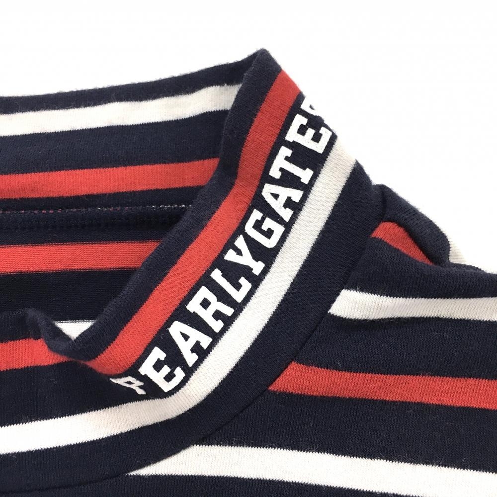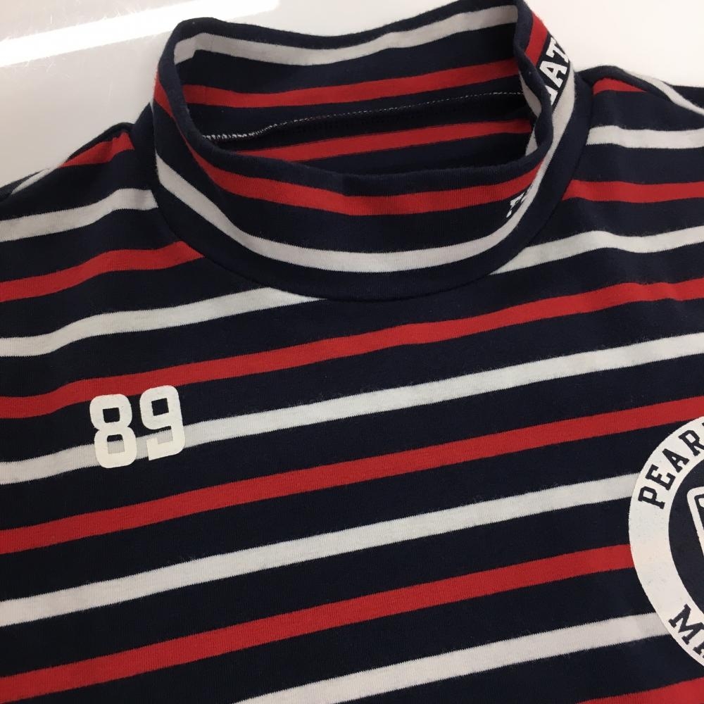 【美品】パーリーゲイツ 半袖ハイネックシャツ ダークネイビー×レッド×白 ボーダー メンズ 5(L) ゴルフウェア PEARLY GATES