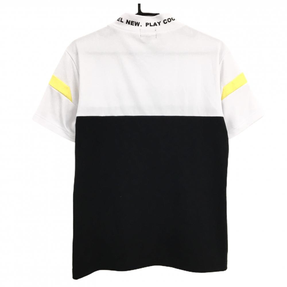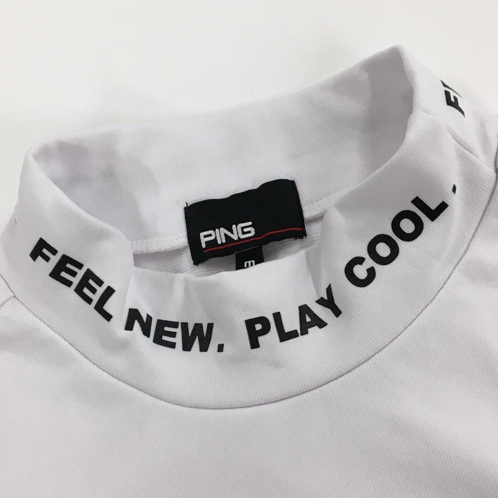 【超美品】ピン 半袖ハイネックシャツ 白×黒×イエロー フロントロゴ メンズ M ゴルフウェア PING