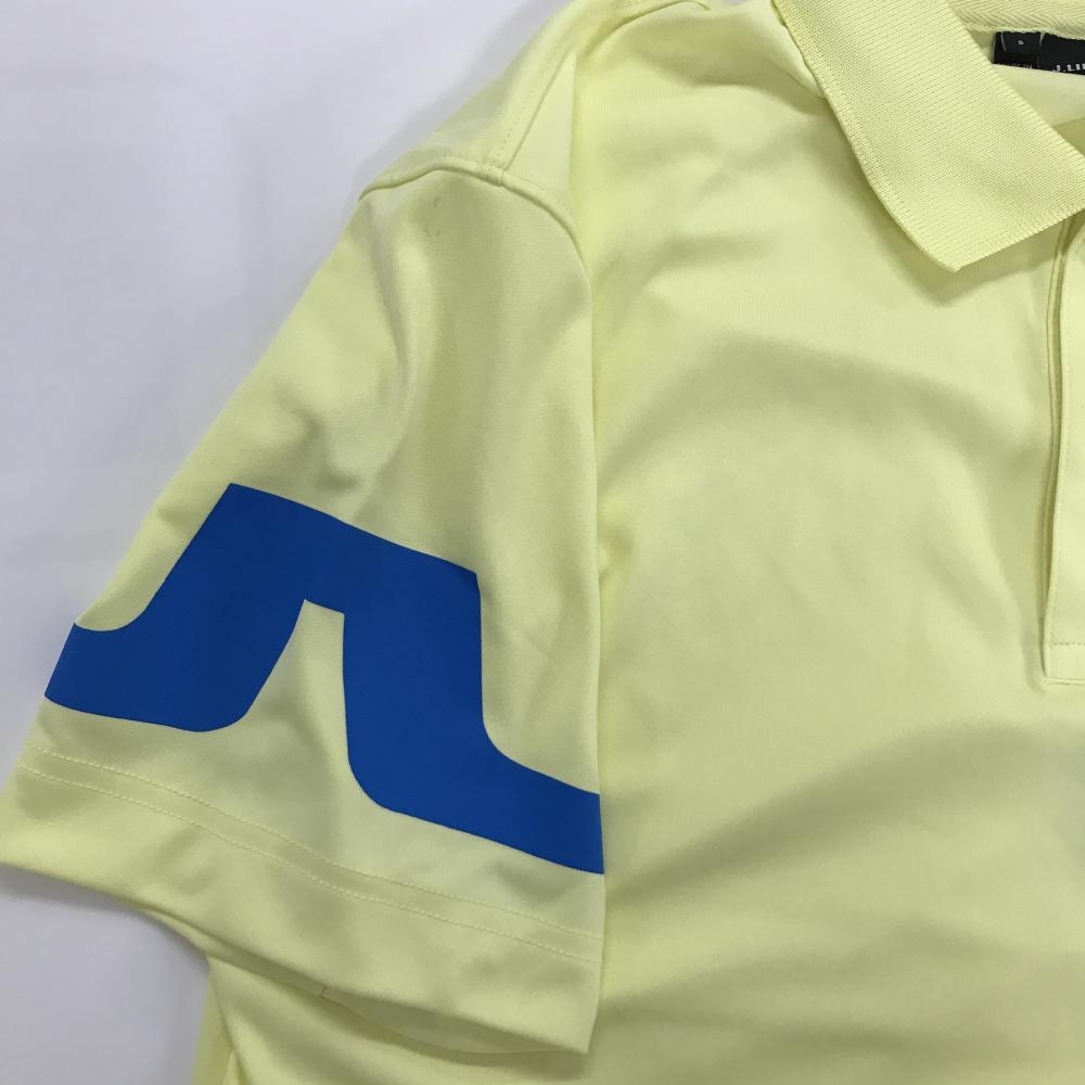 【超美品】ジェイリンドバーグ 半袖ポロシャツ イエロー×ブルー 襟刺しゅう 袖ロゴ メンズ S ゴルフウェア J.LINDEBERG