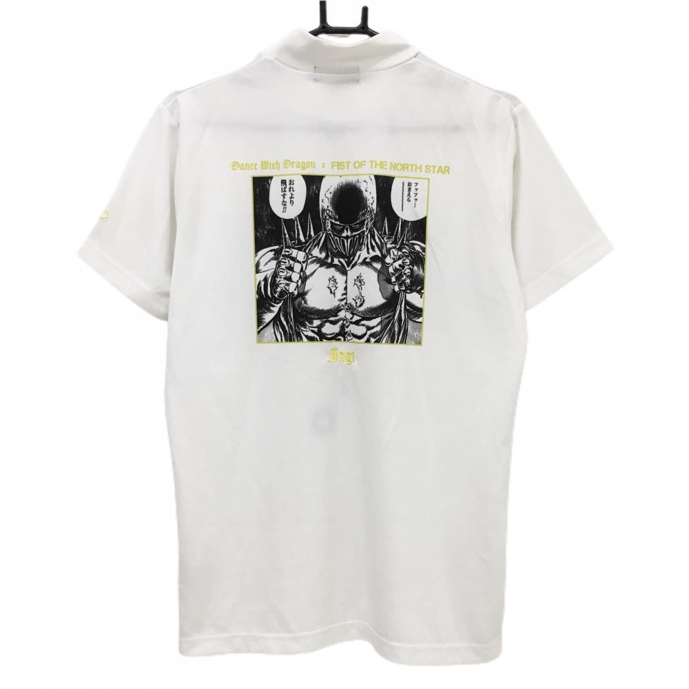 【超美品】ダンスウィズドラゴン 半袖ハイネックシャツ 白×黒×イエロー 北斗の拳 ジャギ メンズ 3(L) ゴルフウェア Dance With Dragon