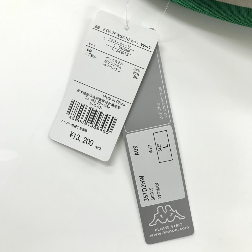 【新品】カッパ スカート 白×グリーン ロゴ総柄 レディース L ゴルフウェア Kappa