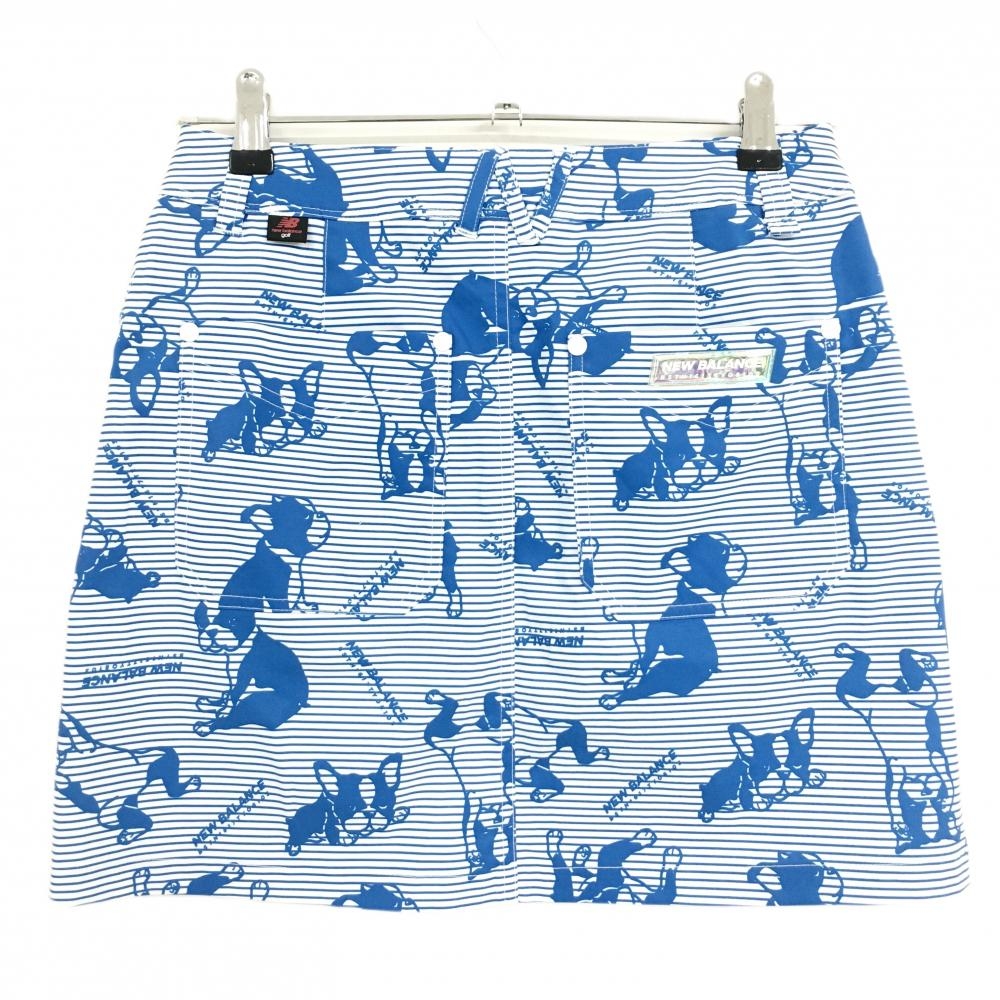 ニューバランスゴルフ スカート 白×ブルー ボーダー ボストンテリア柄 ストレッチ レディース 0(S) ゴルフウェア New Balance