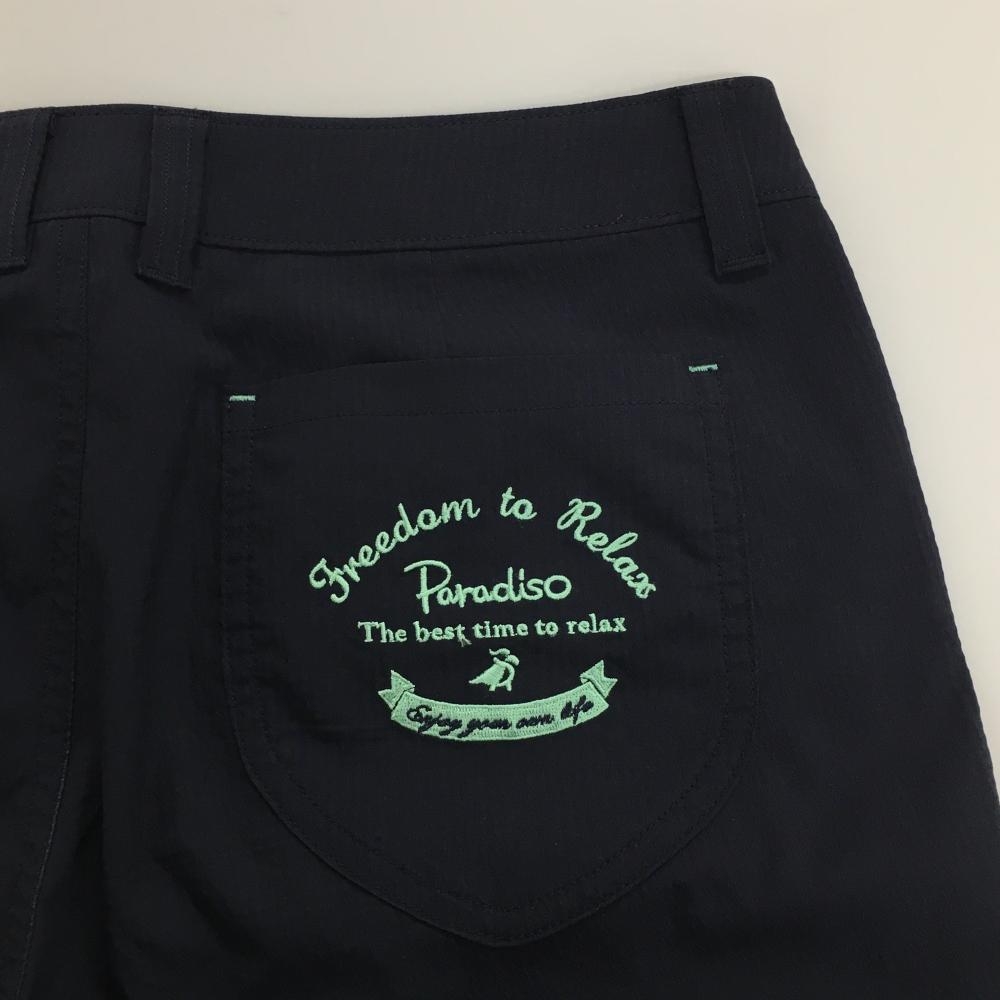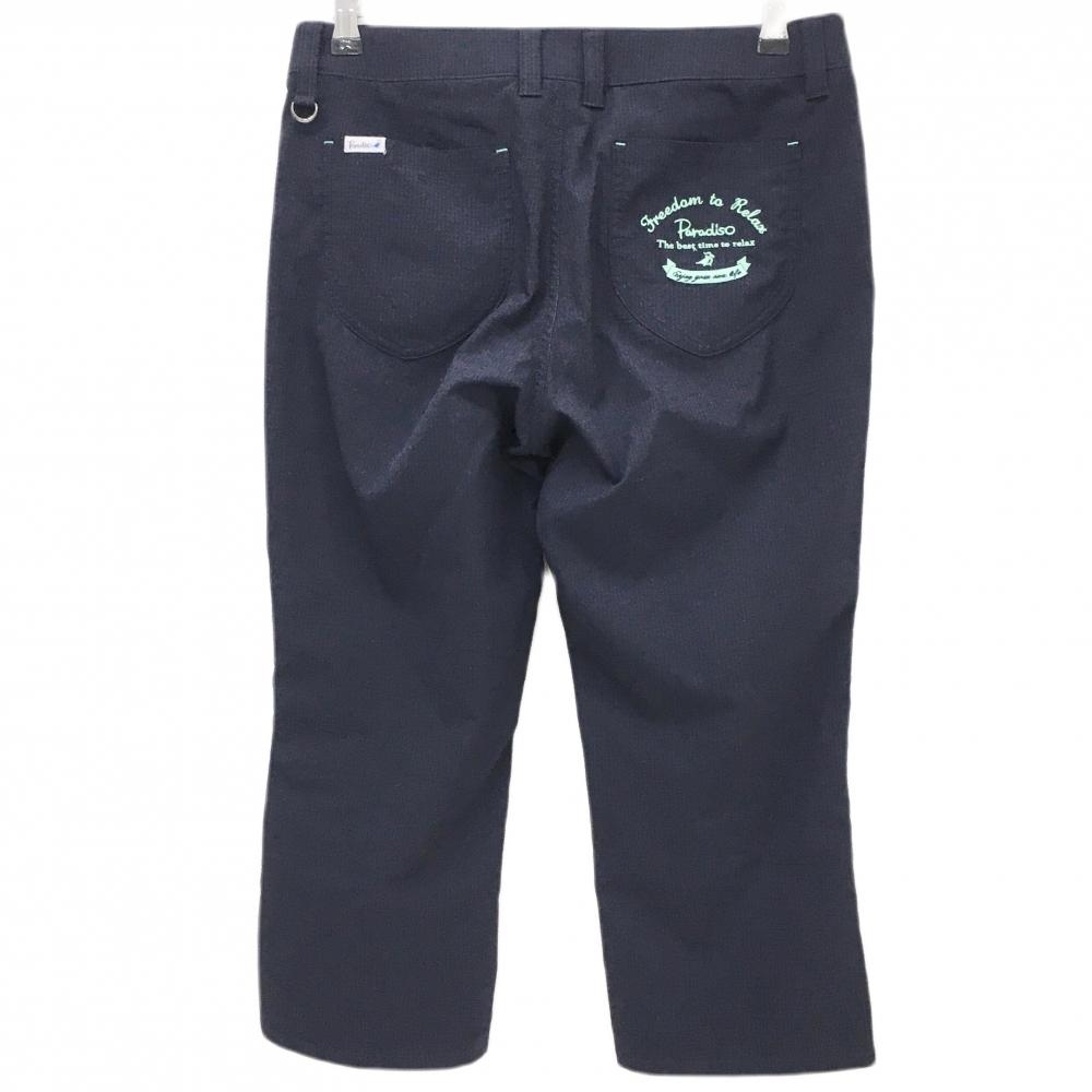 【超美品】パラディーゾ 七分丈パンツ ネイビー×黒 ストライプ ロゴ刺しゅう レディース L ゴルフウェア Paradiso