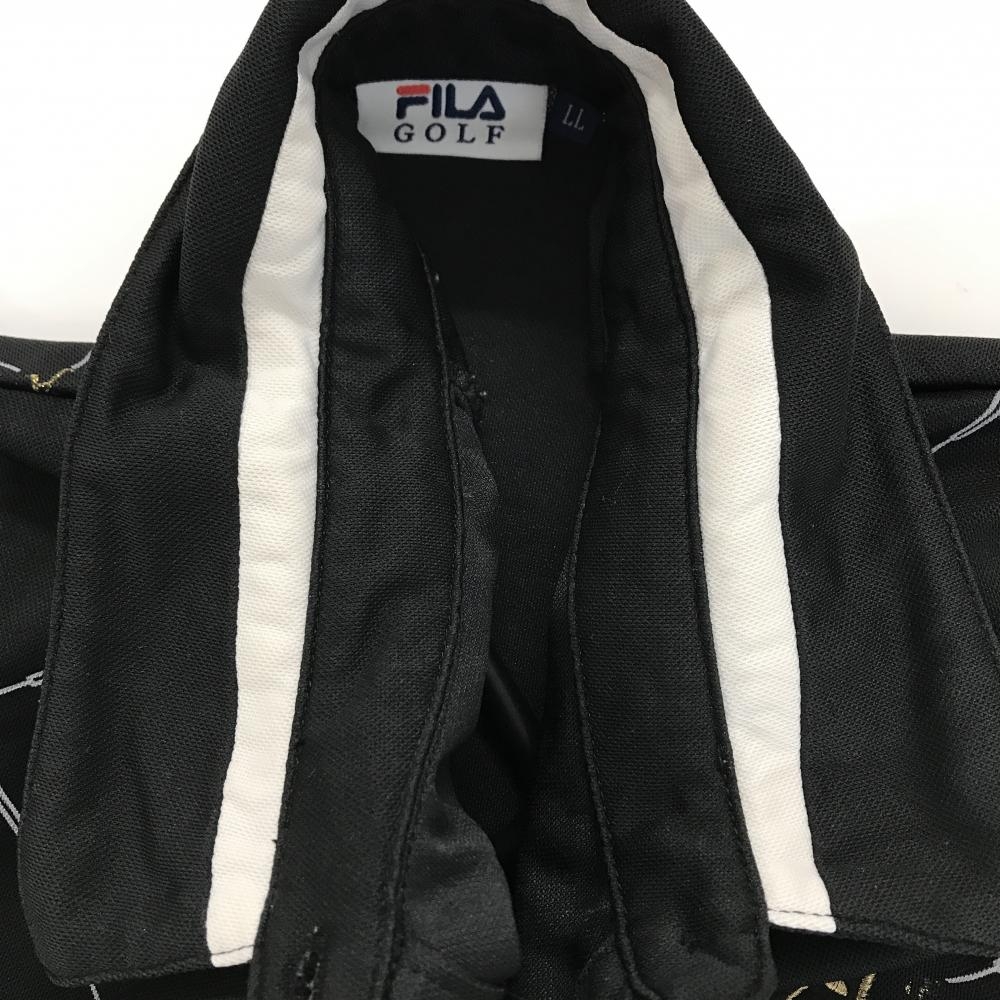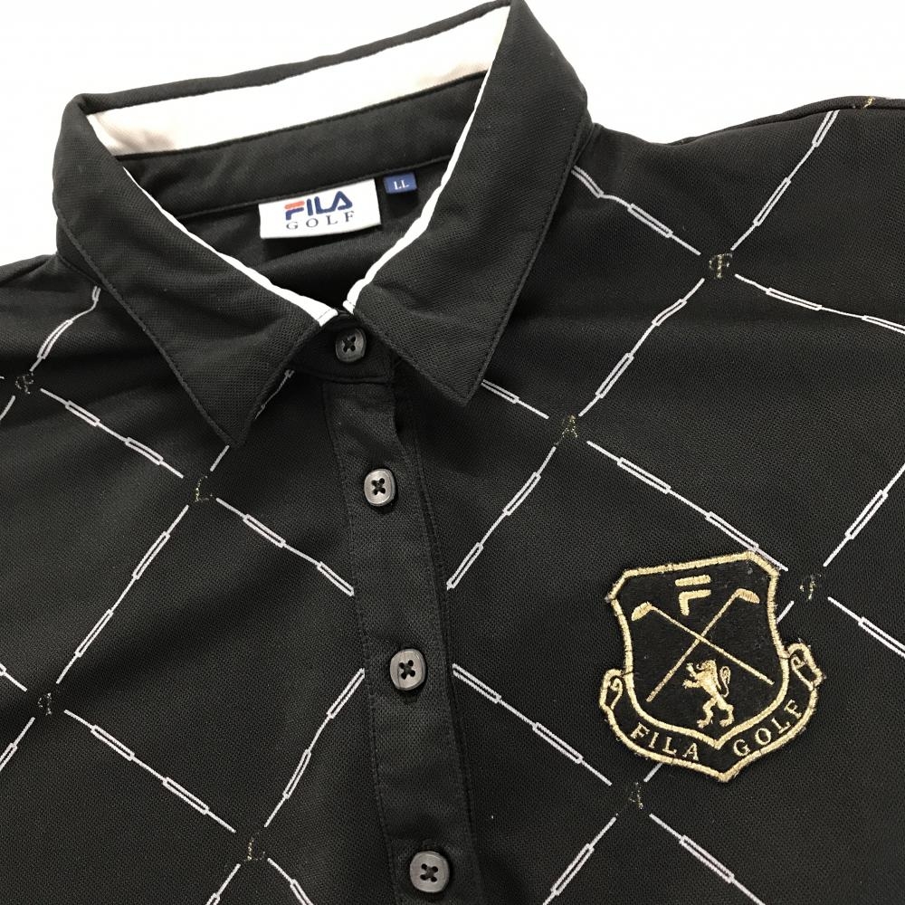フィラゴルフ 半袖ポロワンピース 黒×白 ダイヤ柄 胸元ワッペン レディース LL ゴルフウェア FILA GOLF
