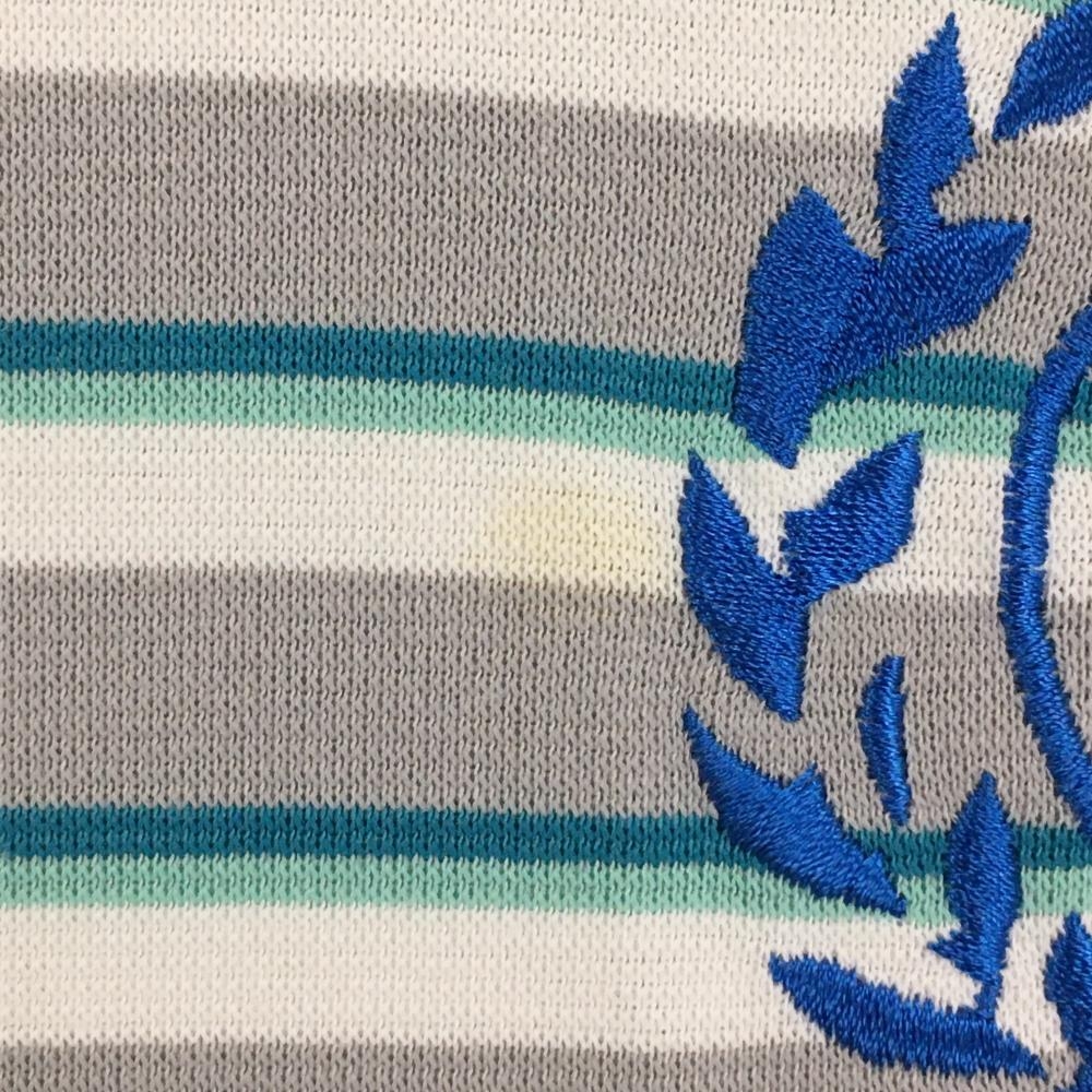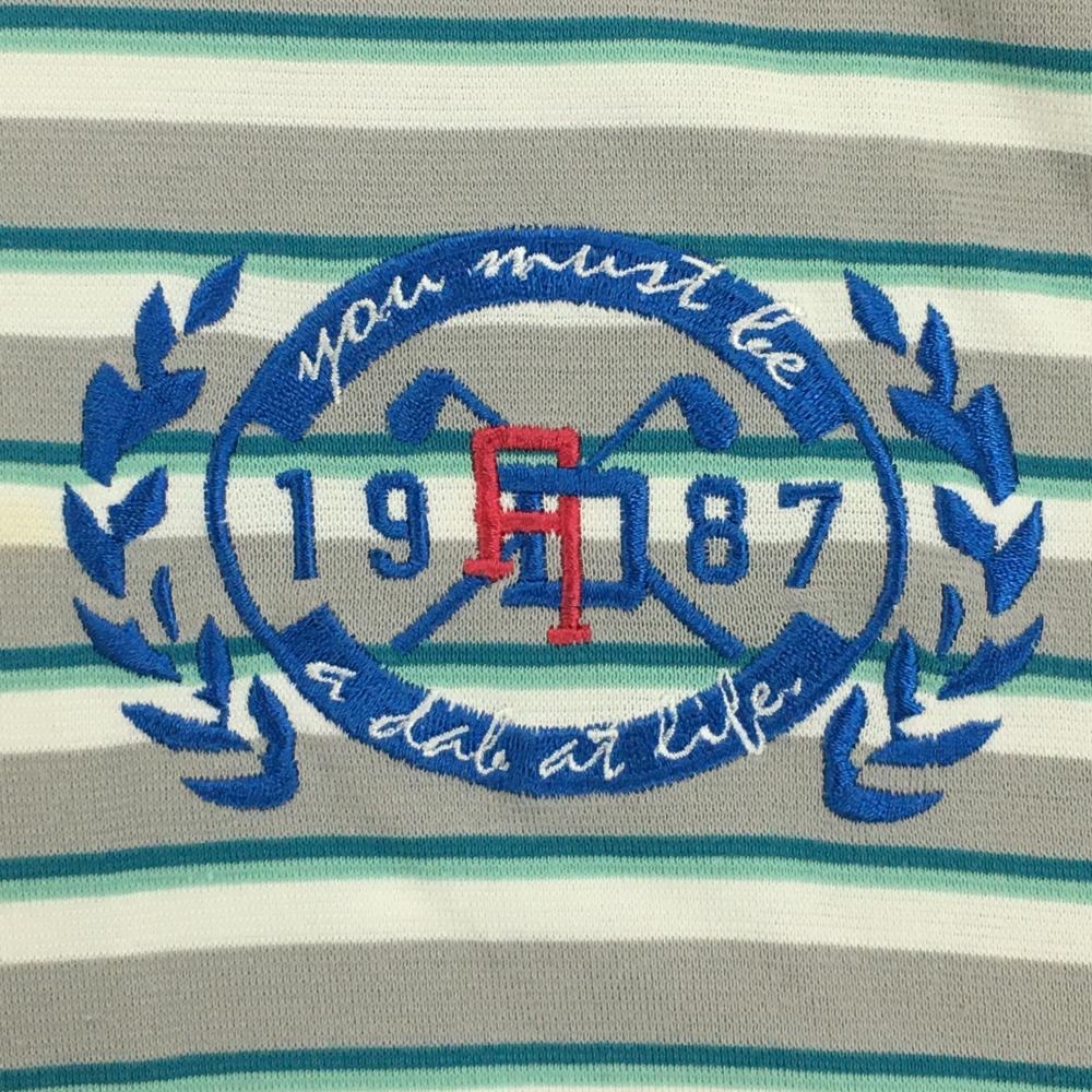 アダバット 半袖ハイネックシャツ グレー×白 ボーダー ハーフジップ メンズ 48(L) ゴルフウェア adabat
