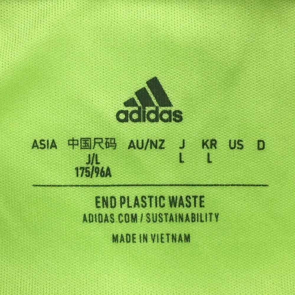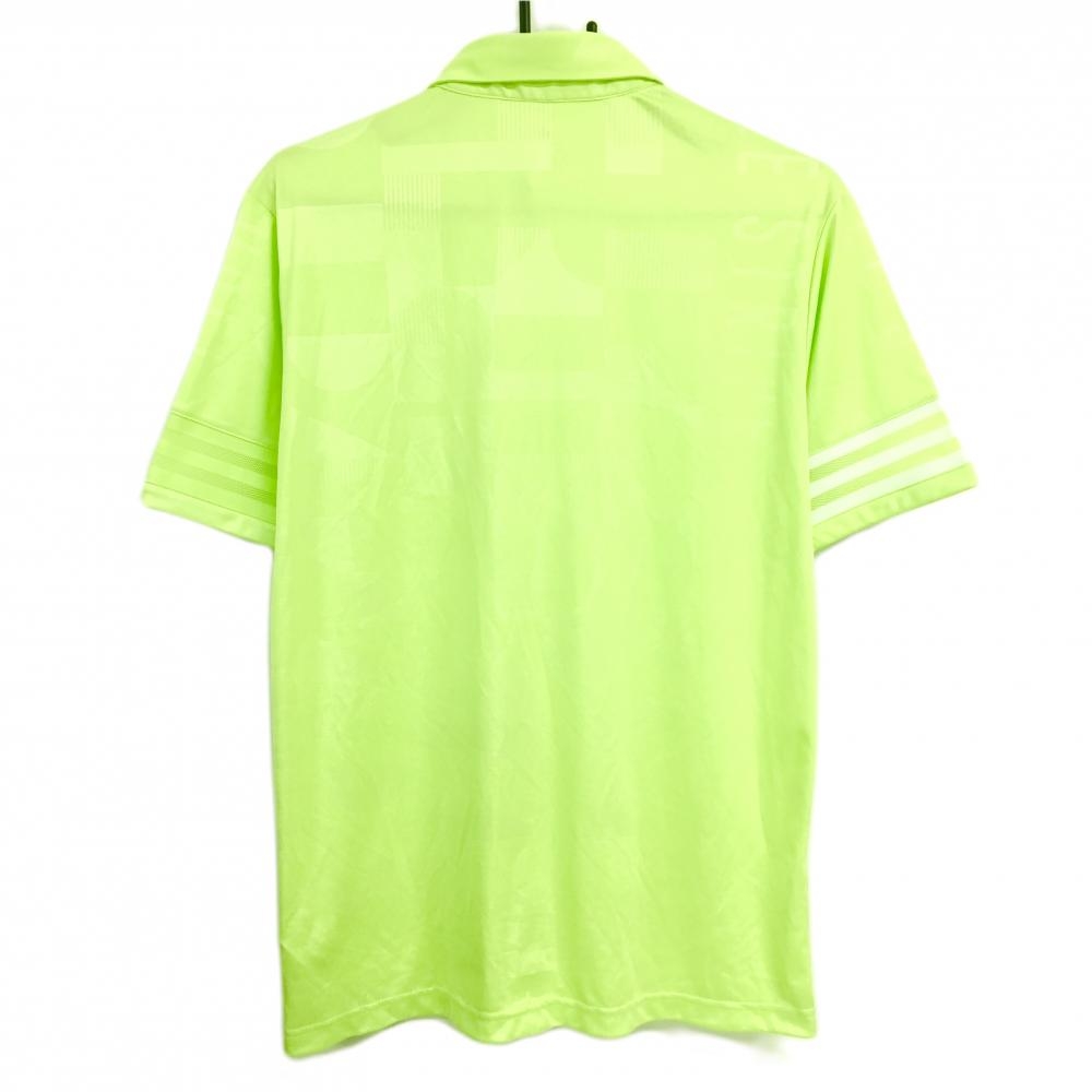 【超美品】アディダス 半袖ポロシャツ イエローグリーン 総柄地模様 袖口3ライン メンズ L ゴルフウェア adidas