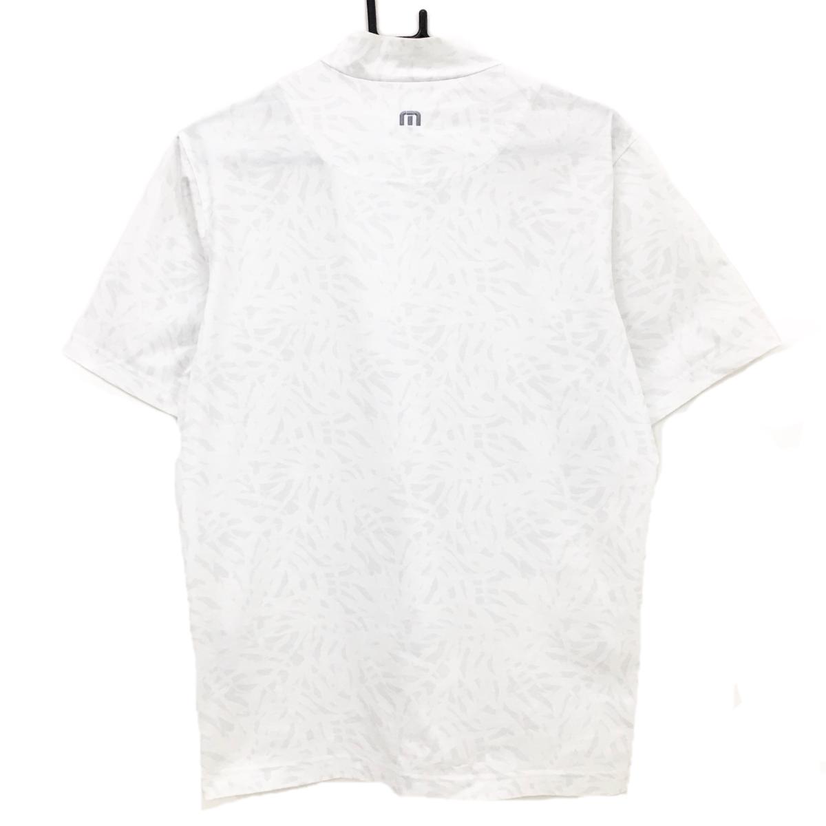 【超美品】トラヴィスマシュー 半袖ハイネックシャツ 白×ライトグレー リーフ調総柄 フロントロゴ メンズ M ゴルフウェア TravisMathew