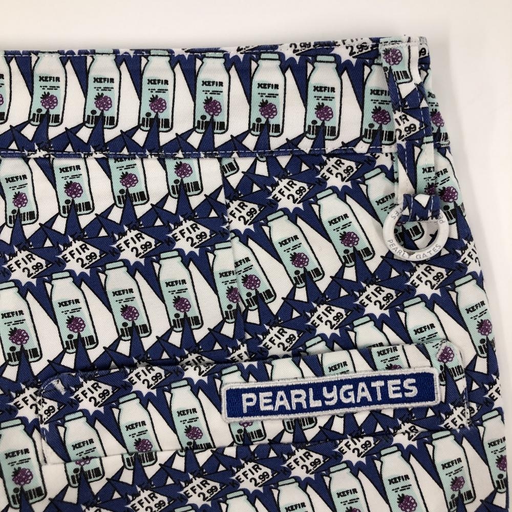 【美品】パーリーゲイツ パンツ ネイビーブルー系×白 ボトル総柄 レディース 0(S) ゴルフウェア PEARLY GATES