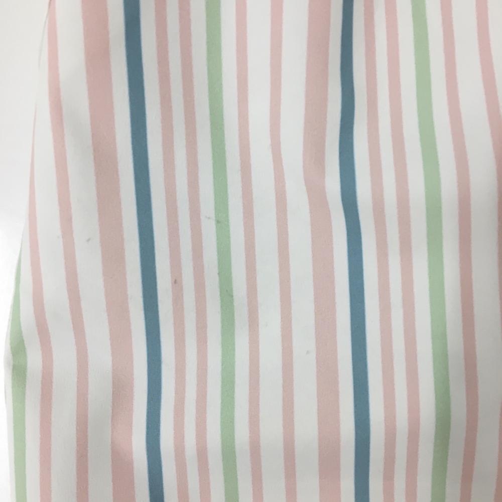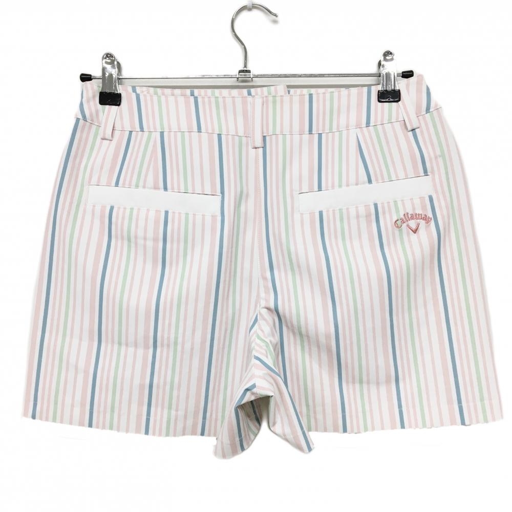 【美品】キャロウェイ ショートパンツ 白×ライトピンク ストライプ ロゴ刺しゅう レディース M ゴルフウェア Callaway
