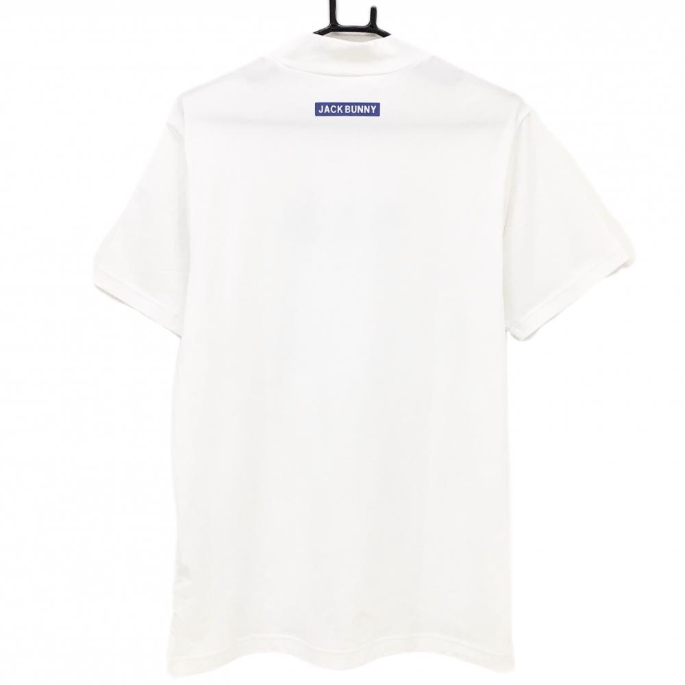 【超美品】ジャックバニー 半袖ハイネックシャツ 白×ブルー フロント・後ろネック下ロゴ メンズ 6(XL) ゴルフウェア Jack Bunny