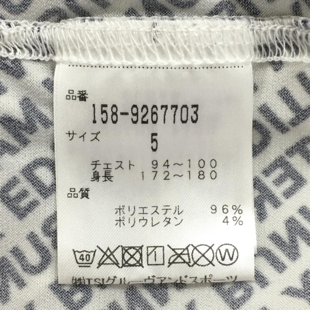 【超美品】マスターバニー 半袖ハイネックシャツ 白×ネイビー 斜めロゴ総柄 ストレッチ メンズ 5(L) ゴルフウェア MASTER BUNNY EDITION