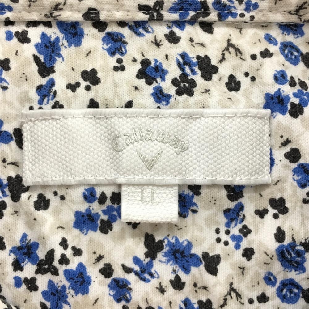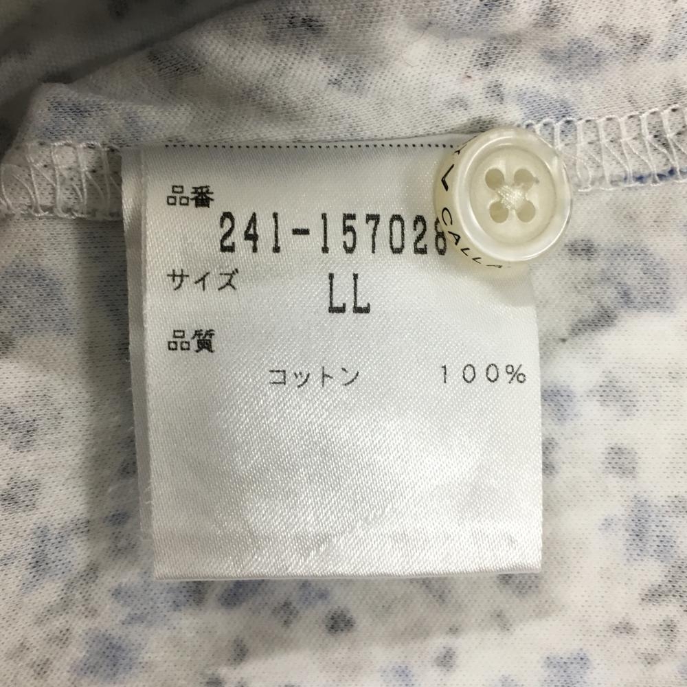 【超美品】キャロウェイ 半袖ポロシャツ 白×ブルー 小花柄 ロゴ刺しゅう メンズ LL ゴルフウェア Callaway
