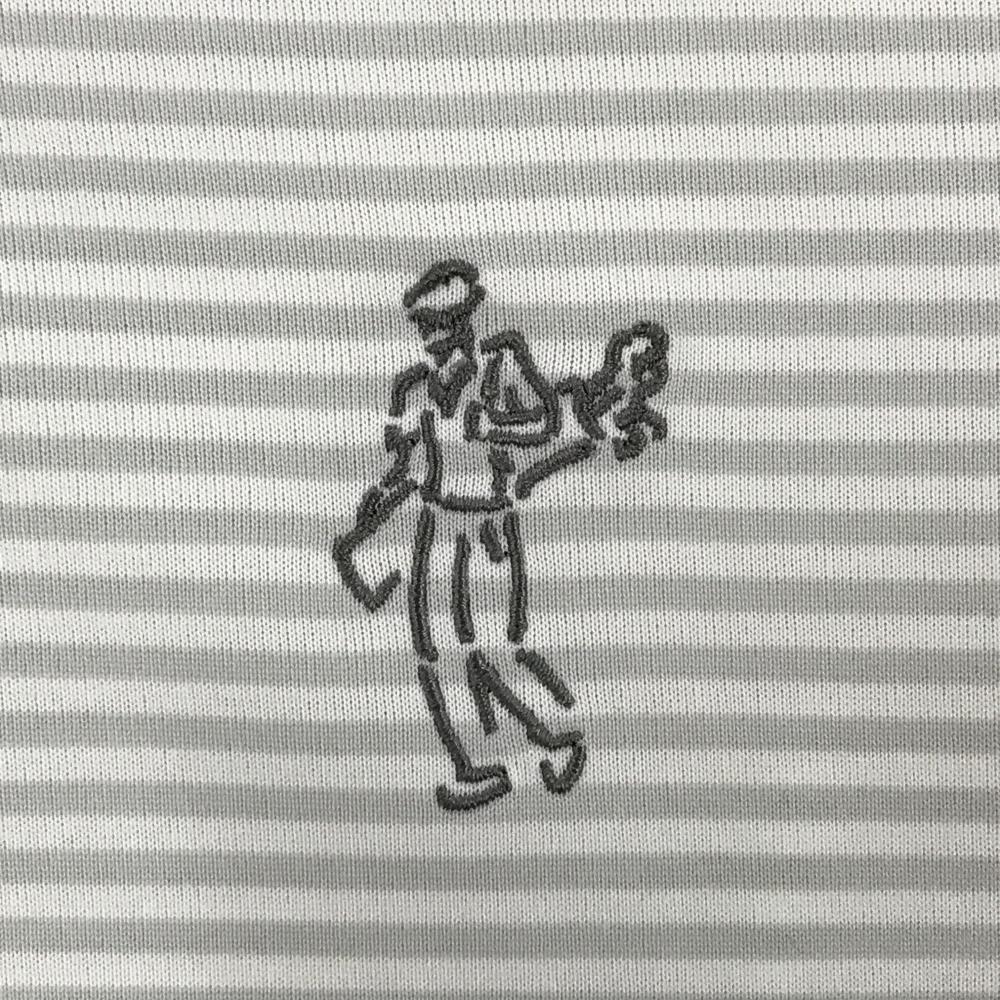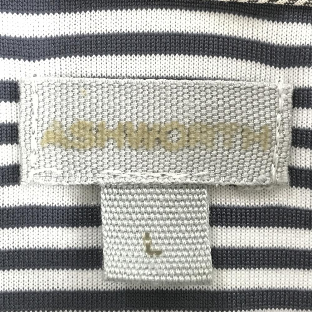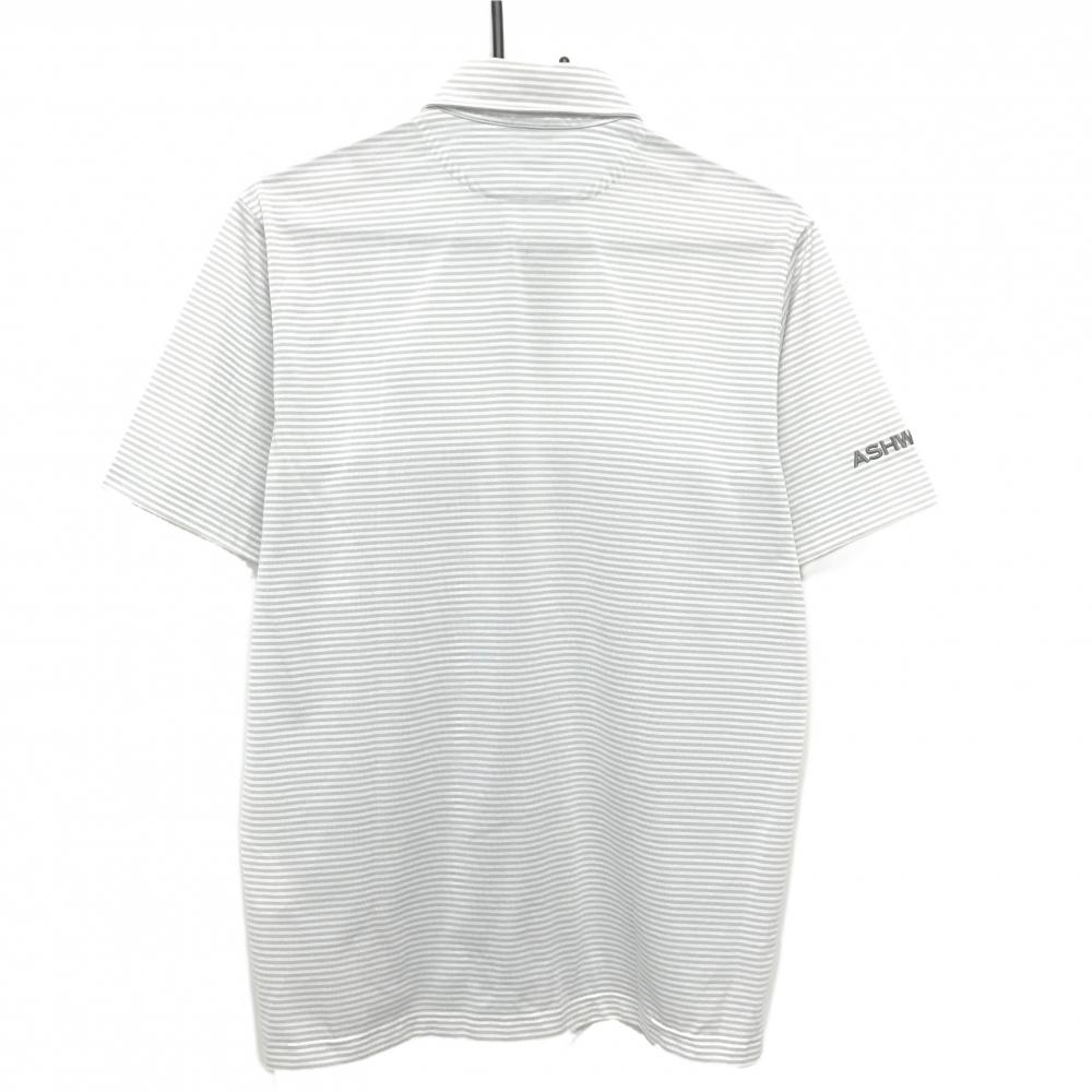 アシュワース 半袖ポロシャツ 白×ライトグレー 細ボーダー ボタンダウン メンズ L ゴルフウェア ASHWORTH
