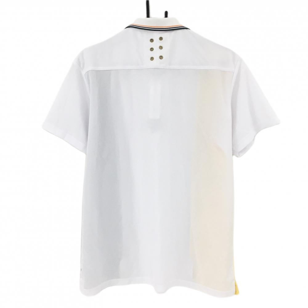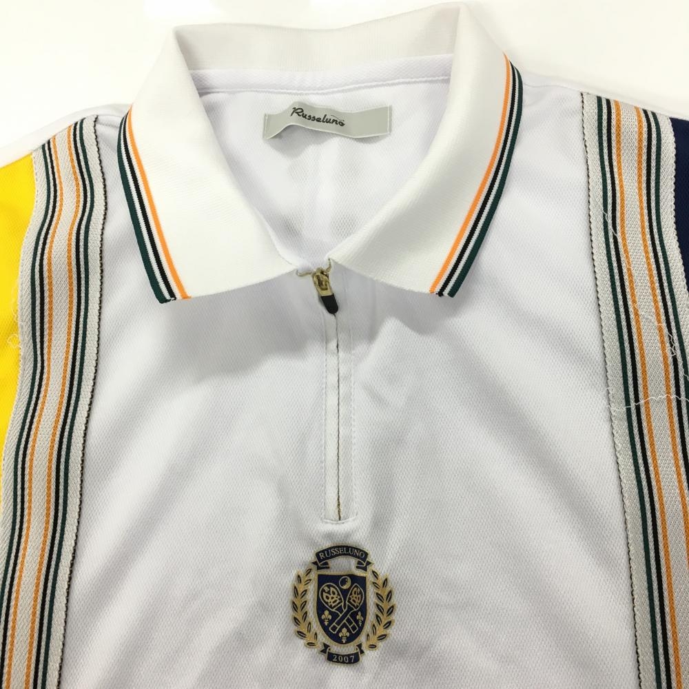 ラッセルノ 半袖ポロシャツ 白×ネイビー×イエロー 一部ストライプ ルチャマスク ハーフジップ メンズ 6(XL) ゴルフウェア RUSSELUNO