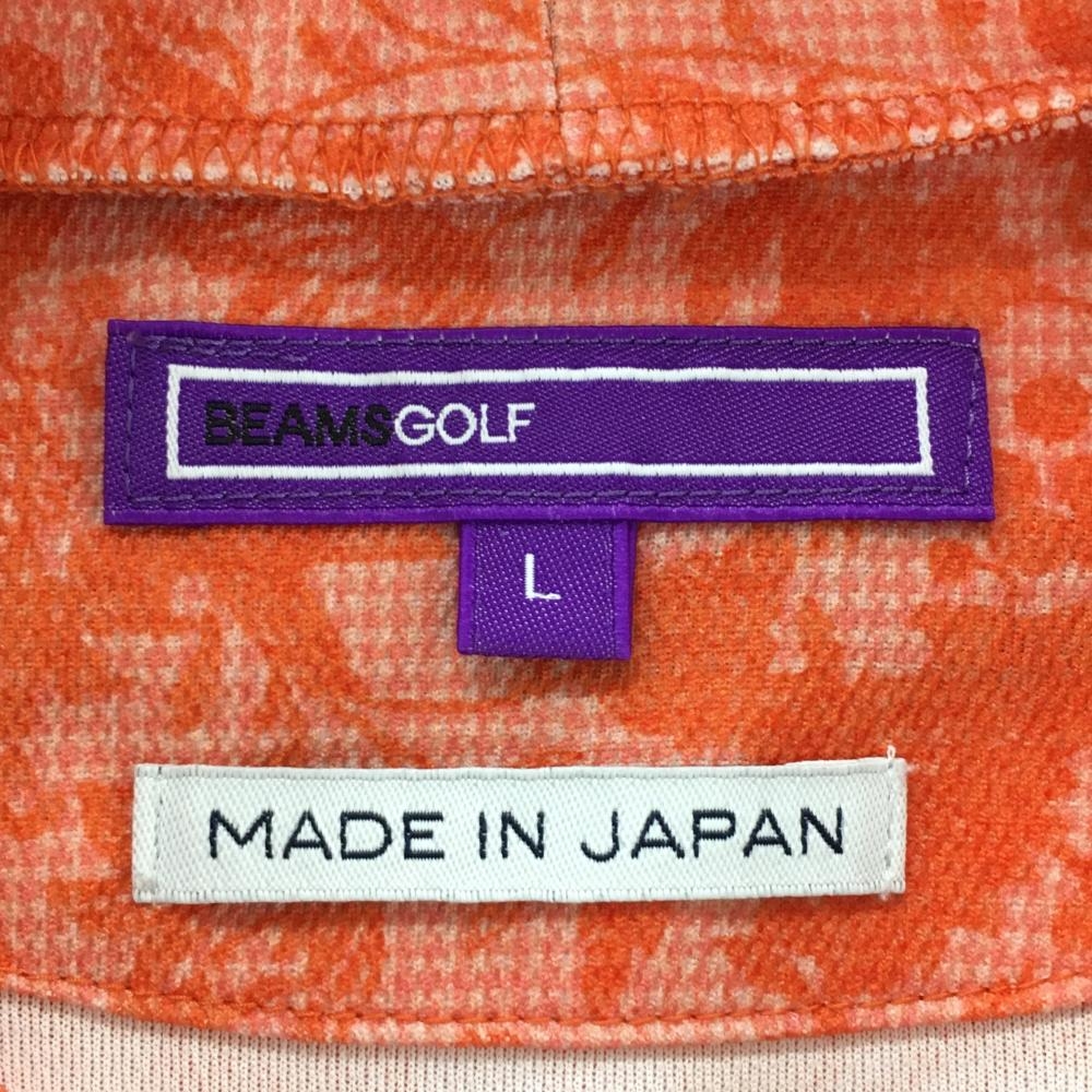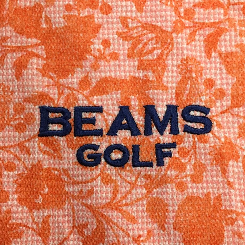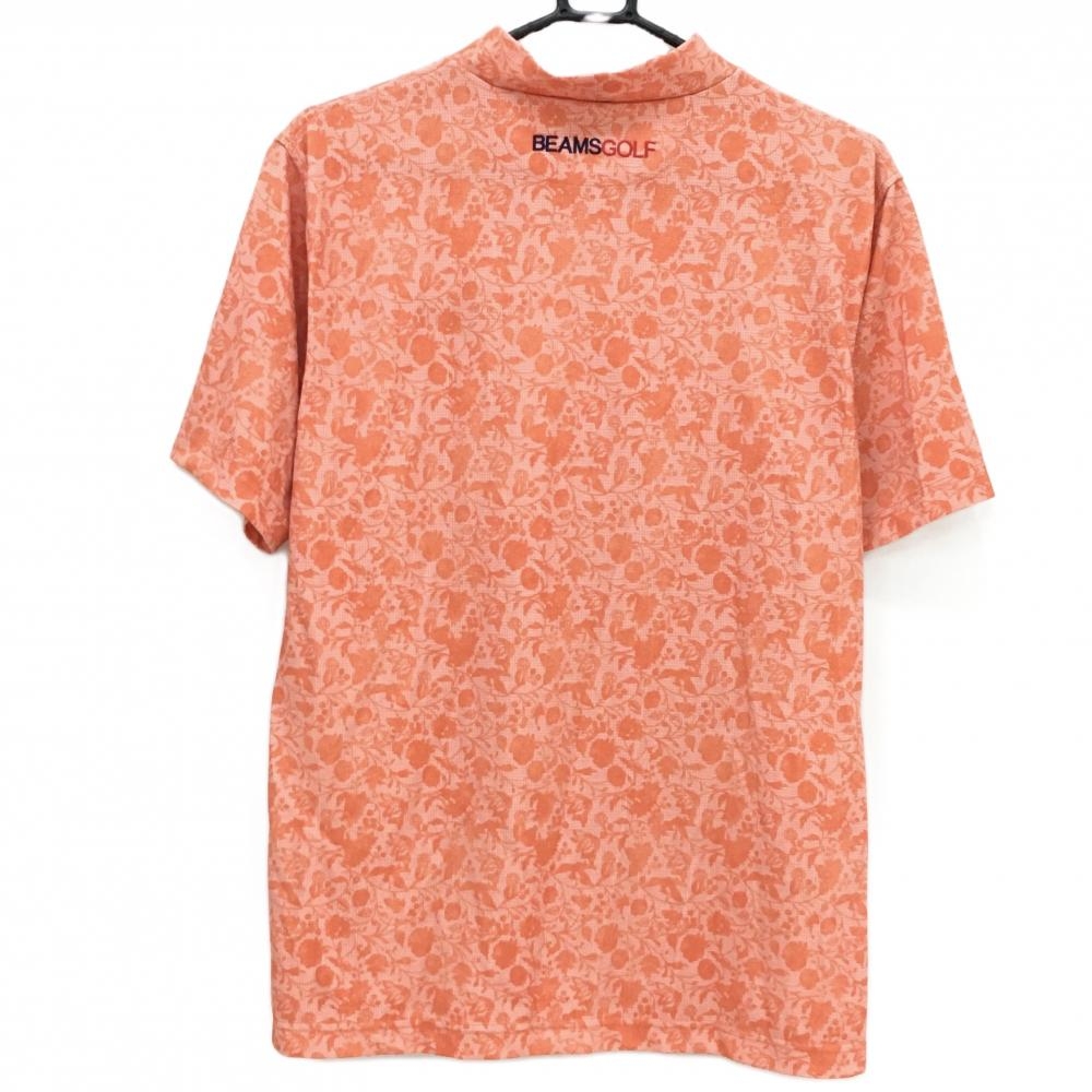 【超美品】ビームスゴルフ 半袖ハイネックシャツ オレンジ 花柄 チェック ロゴ刺しゅうネイビー メンズ L ゴルフウェア BEAMS GOLF