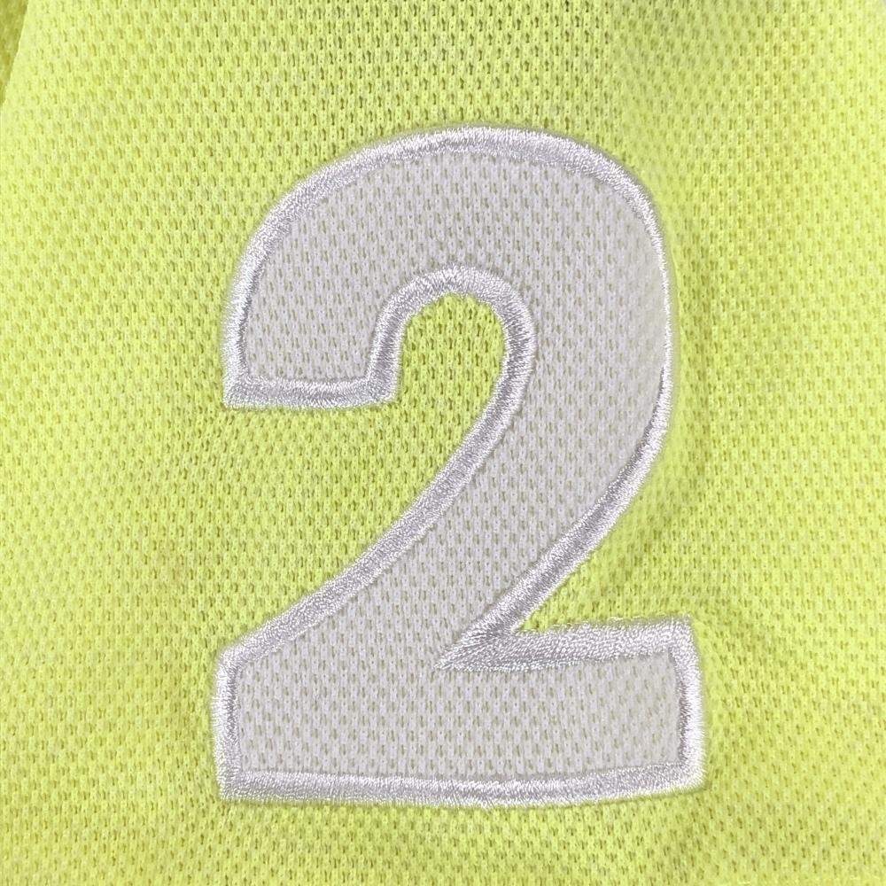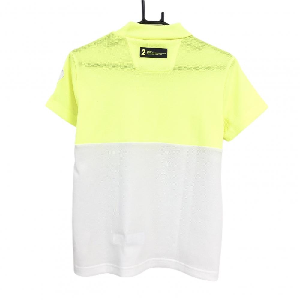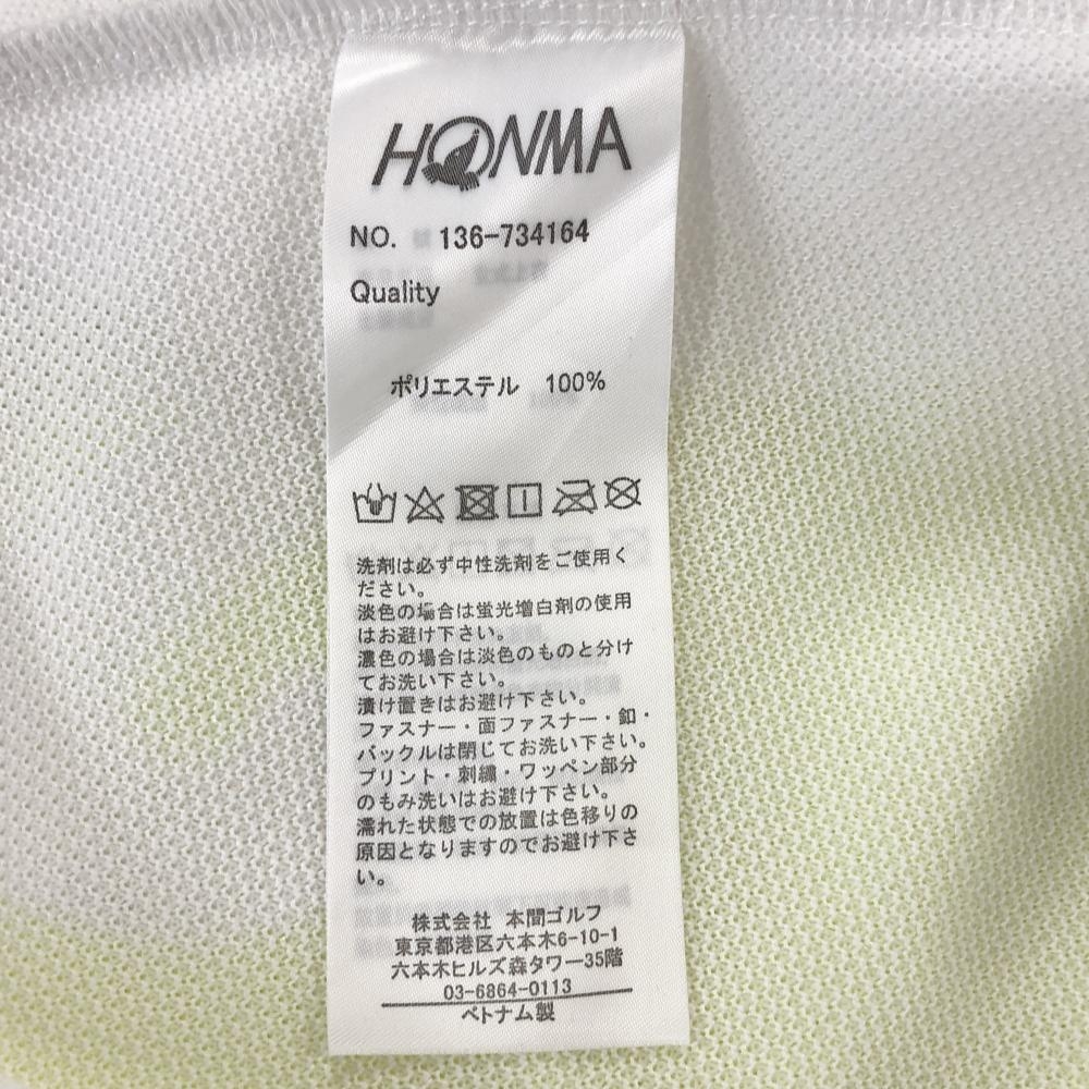 【超美品】ホンマ 半袖ハイネックシャツ 蛍光イエロー×白 袖ナンバリング バイカラー レディース L ゴルフウェア HONMA