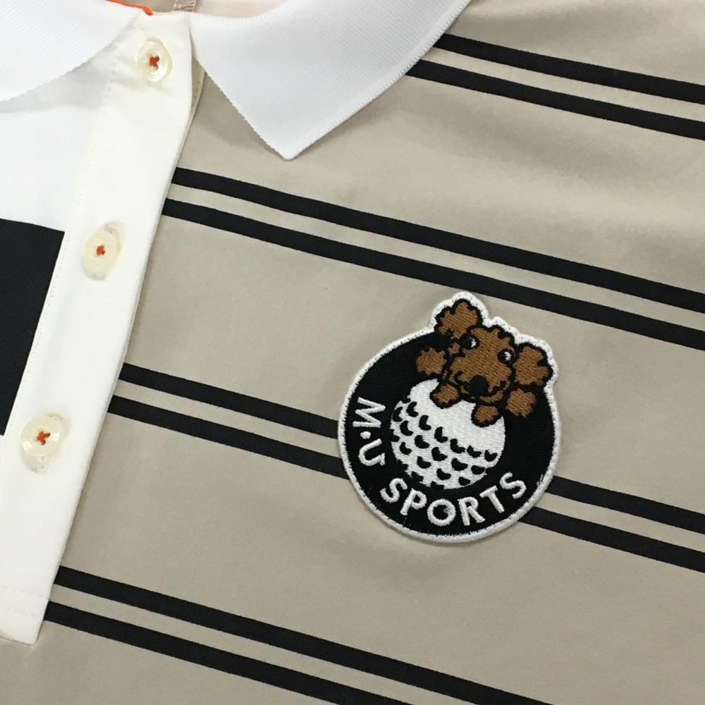MUスポーツ 半袖ポロシャツ 黒×白×ベージュ ボーダー レディース 42(L) ゴルフウェア M・U SPORTS