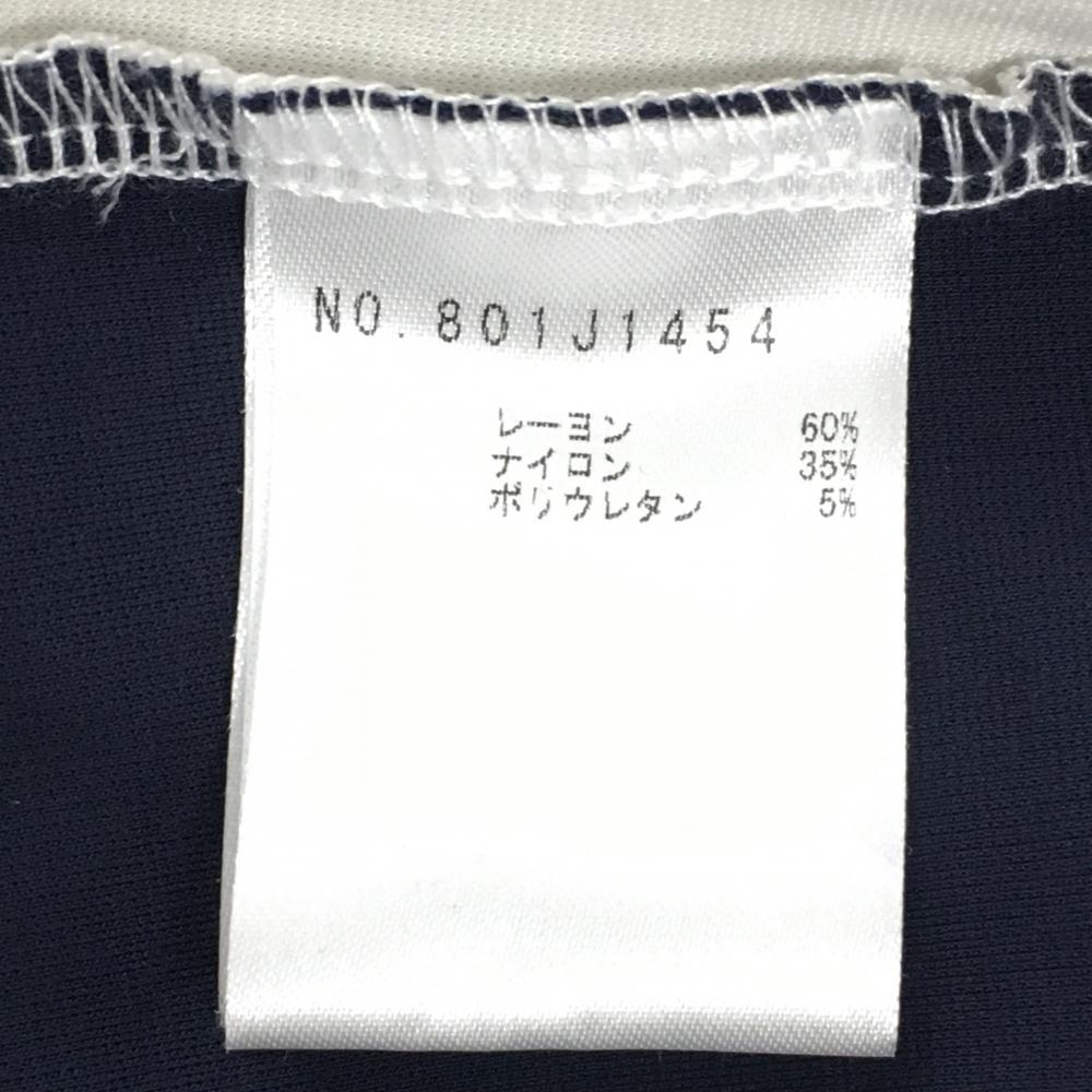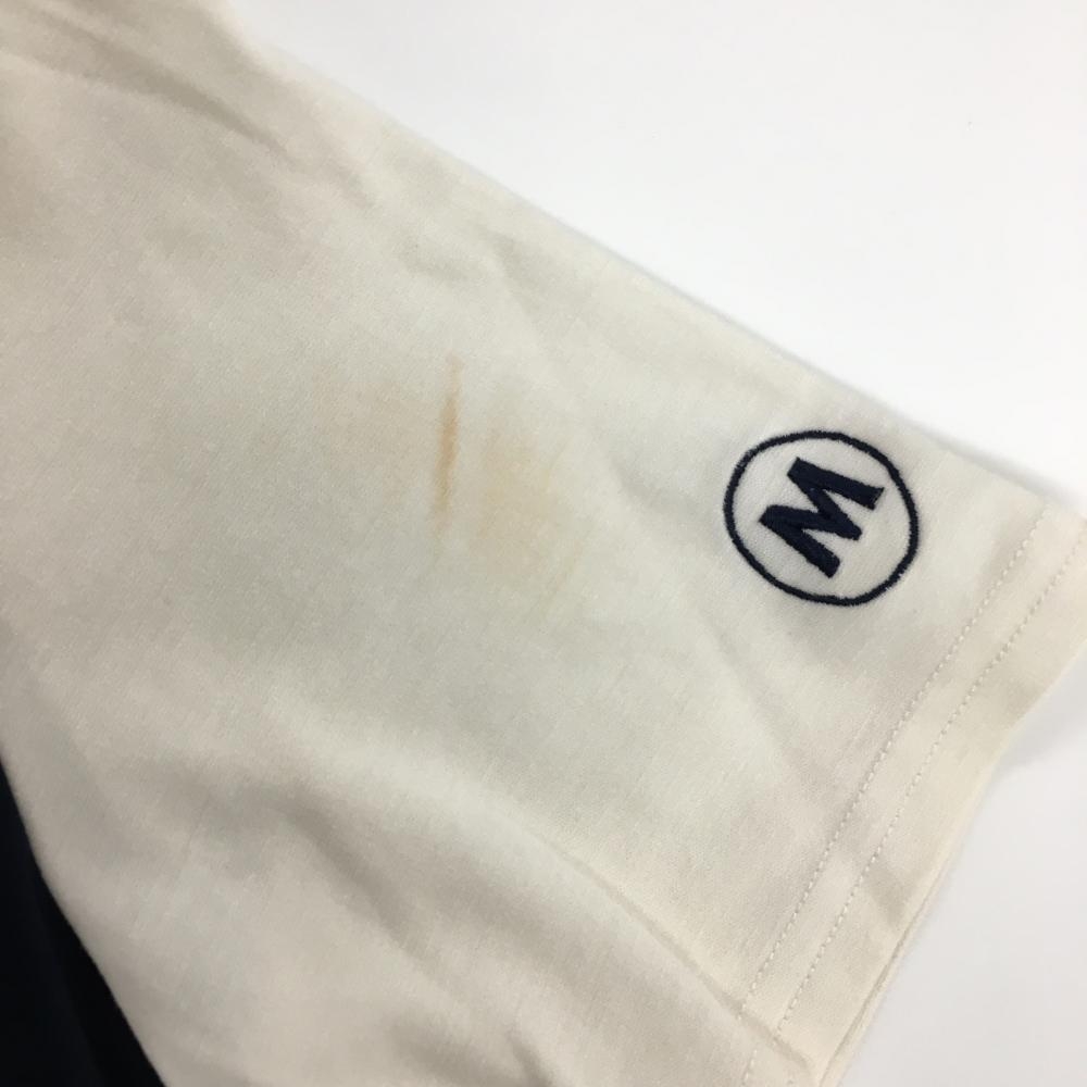 MUスポーツ 半袖ハイネックシャツ 白×ネイビー バイカラー レディース 40(M) ゴルフウェア M・U SPORTS