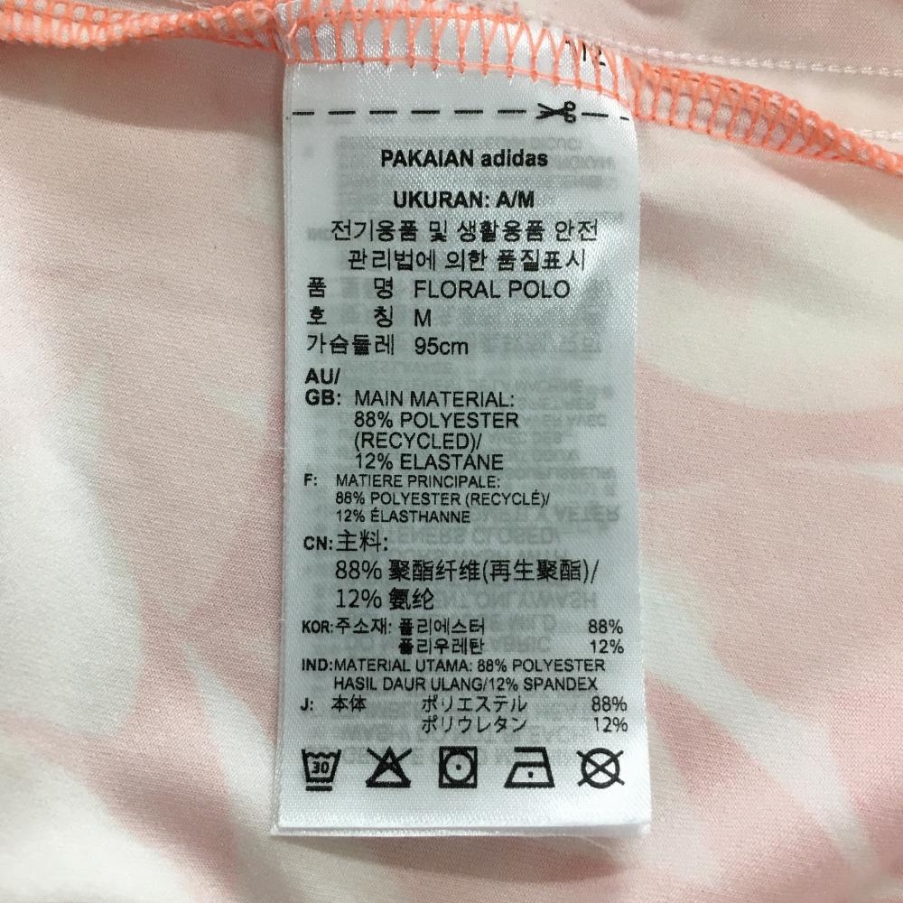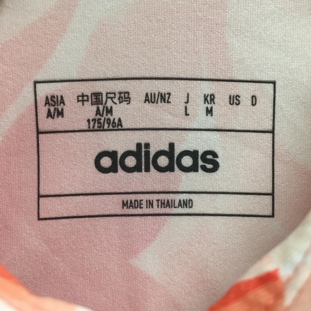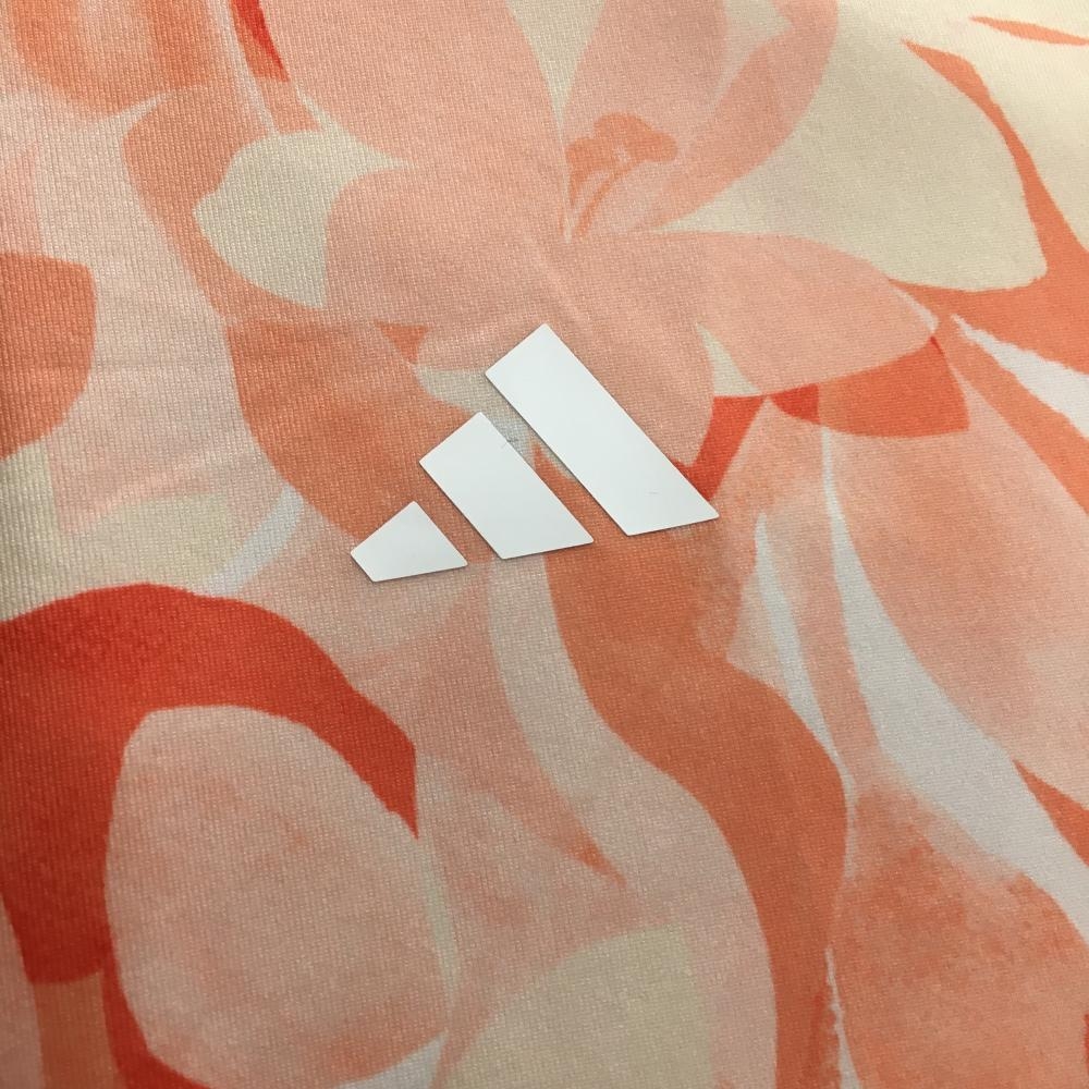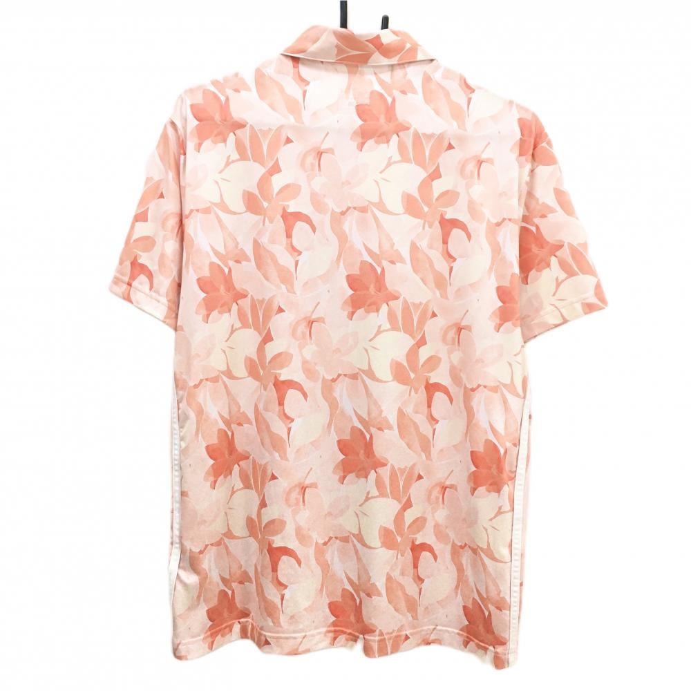 【超美品】アディダス 半袖ポロシャツ オレンジピンク系×ライトピンク系 総柄 花 リーフ サイド3ライン メンズ L ゴルフウェア adidas