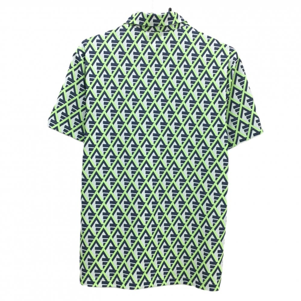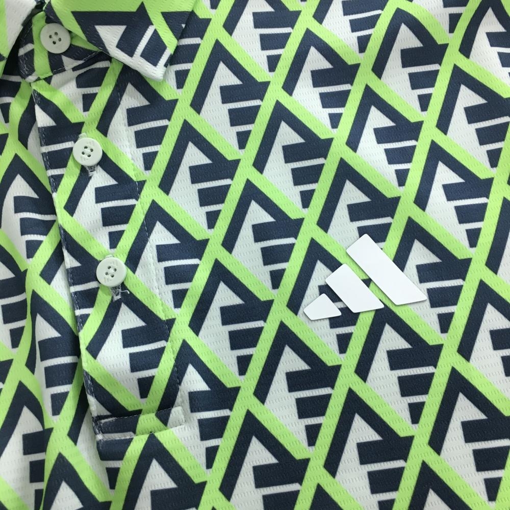 【超美品】アディダス 半袖ポロシャツ 白×ネイビー×ライトグリーン 総柄 胸ロゴ メンズ L ゴルフウェア adidas