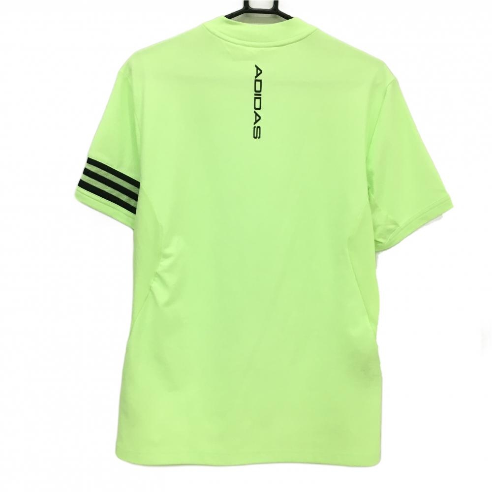アディダス Tシャツ 蛍光グリーン系×黒 袖3ライン・一部メッシュ 胸ロゴ メンズ ゴルフウェア 2024年モデル adidas