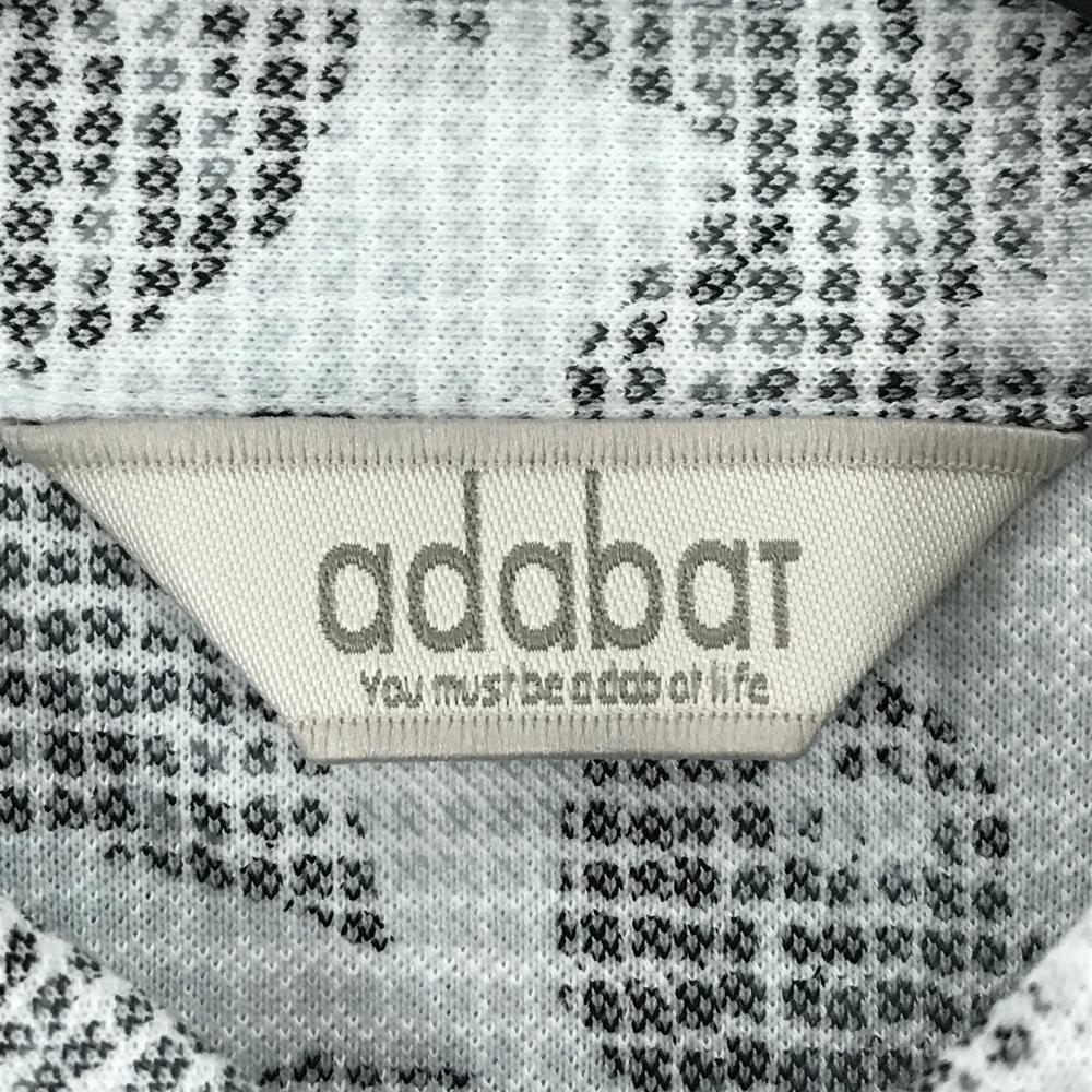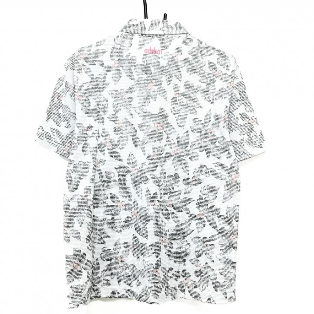 【超美品】アダバット 半袖ポロシャツ ライトグレー系×黒×レッド 総柄 リーフ ボタンダウン メンズ 48(L) ゴルフウェア adabat