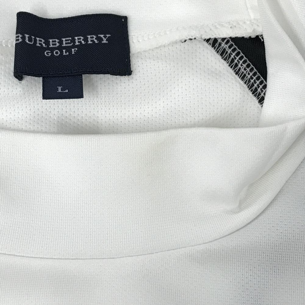 バーバリーゴルフ 半袖ハイネックシャツ 白×黒 ロゴ刺しゅう メンズ L ゴルフウェア BURBERRY GOLF