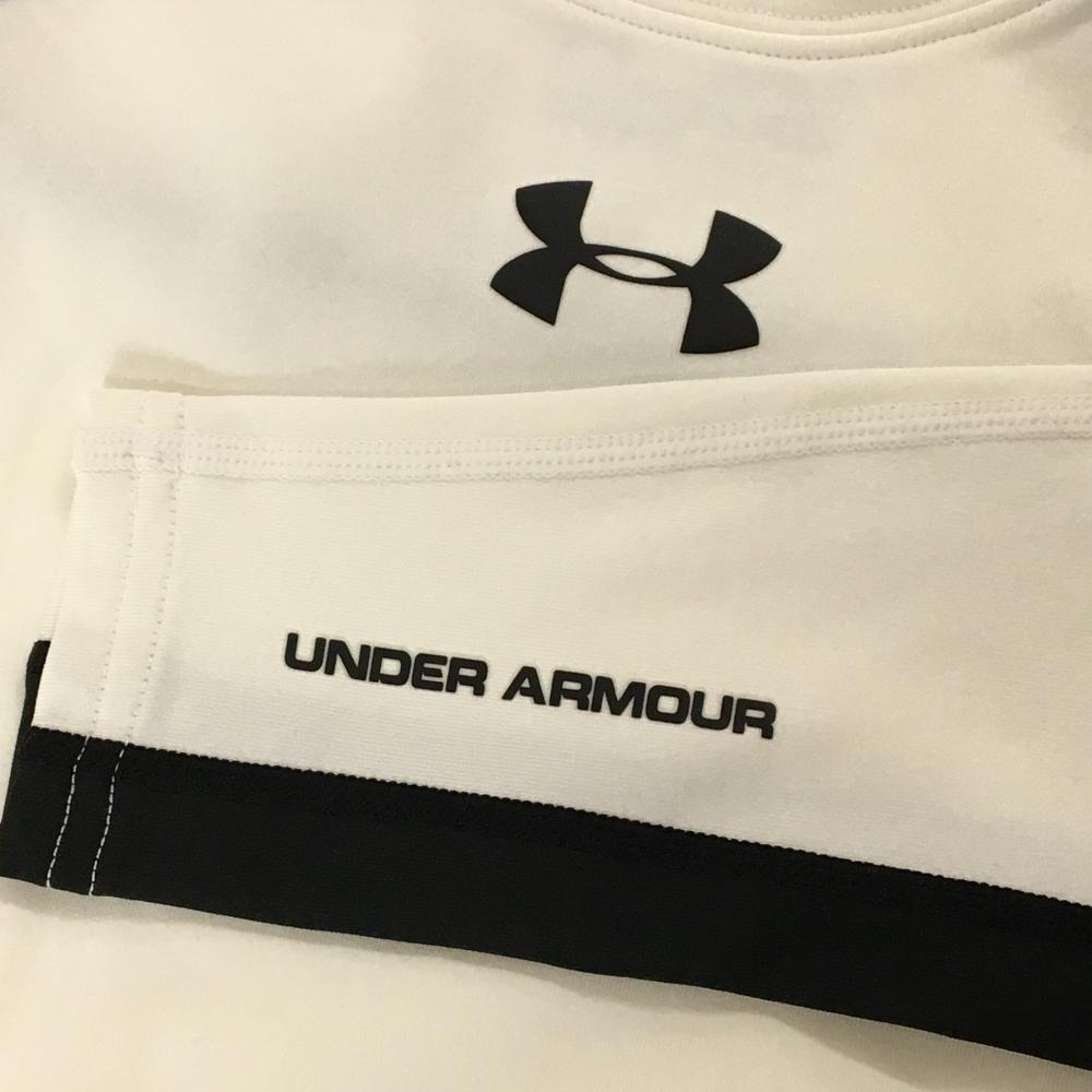 【超美品】アンダーアーマー ハイネックインナーシャツ 白×黒 裏起毛 コンプレッション coldgear メンズ MD ゴルフウェア UNDER ARMOUR