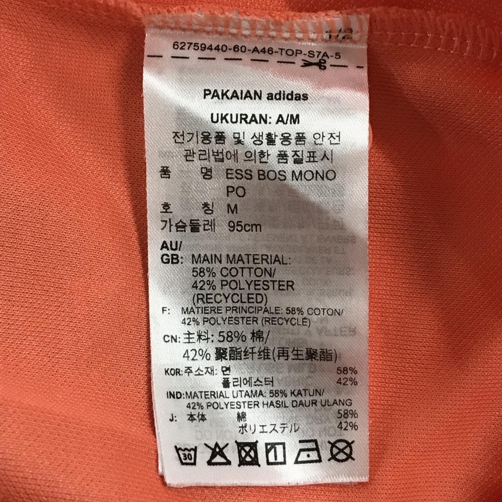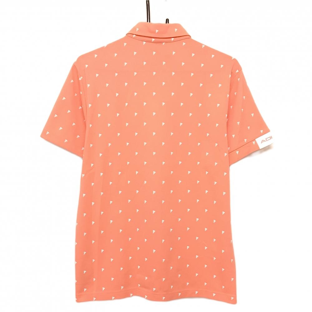 【美品】アディダス 半袖ポロシャツ サーモンピンク×白 ロゴ総柄 胸ロゴ メンズ ゴルフウェア adidas