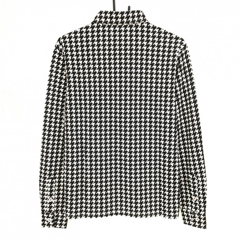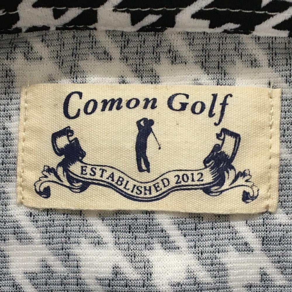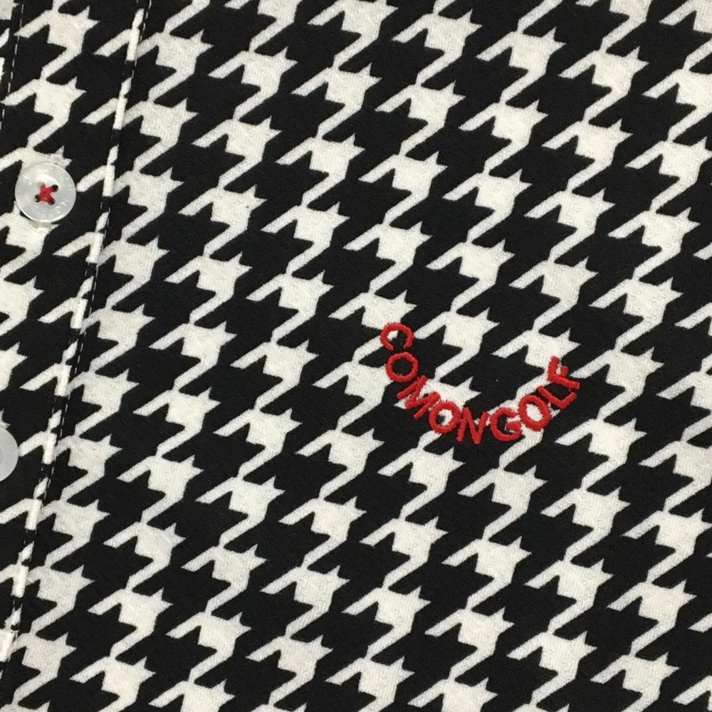 【新品】コモンゴルフ 長袖ポロシャツ 白×黒 千鳥格子 ボタンダウン ストレッチ メンズ M ゴルフウェア COMONGOLF