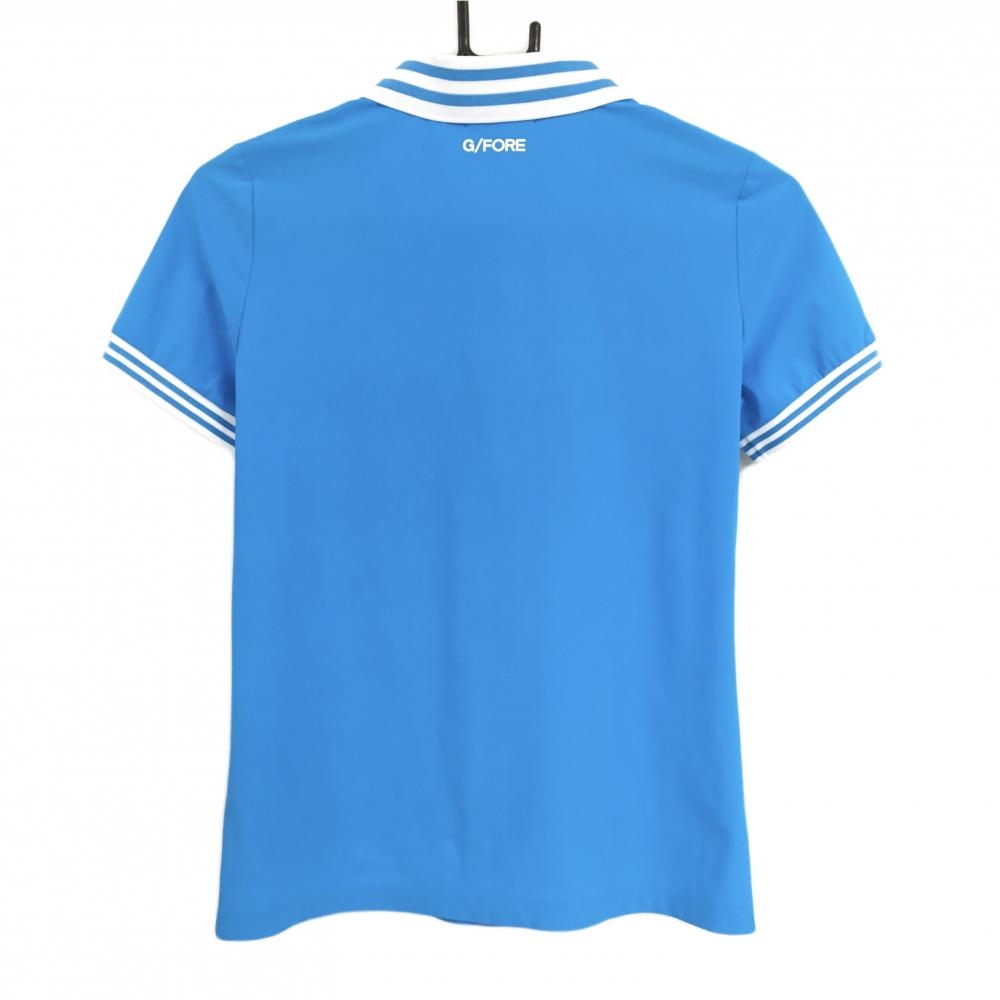 【美品】ジーフォア 半袖ポロシャツ ターコイズブルー ハーフジップ ストレッチ レディース 36(S) ゴルフウェア G/FORE
