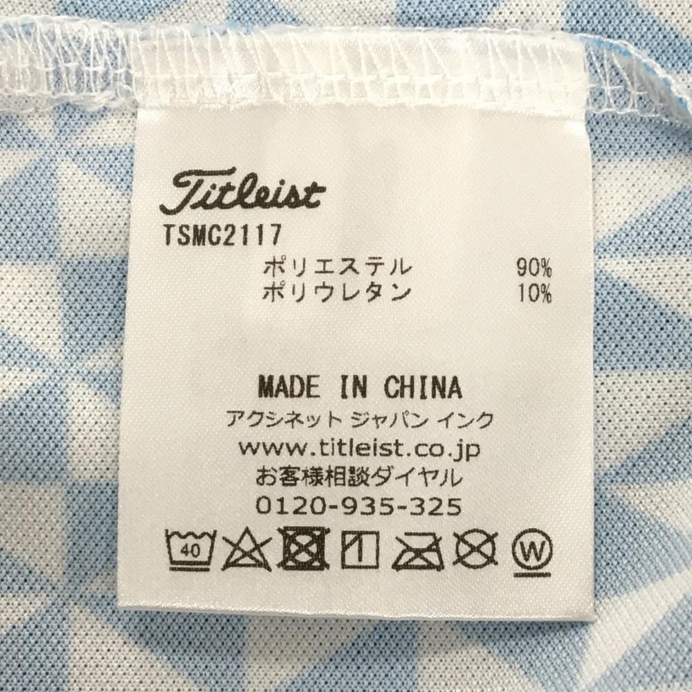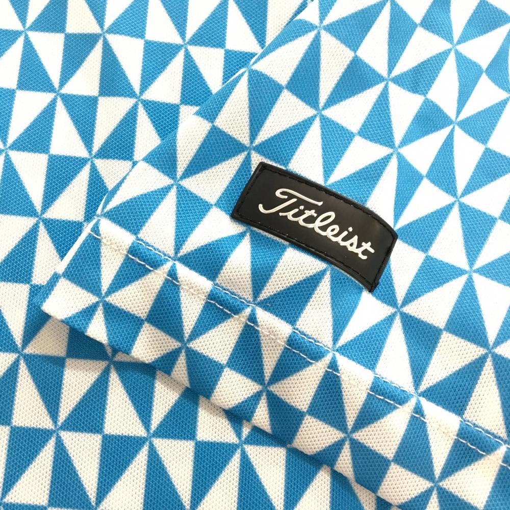 【超美品】タイトリスト 半袖ポロシャツ 白×ブルー 総柄 ボタンダウン 袖ロゴ メンズ L ゴルフウェア TITLEIST