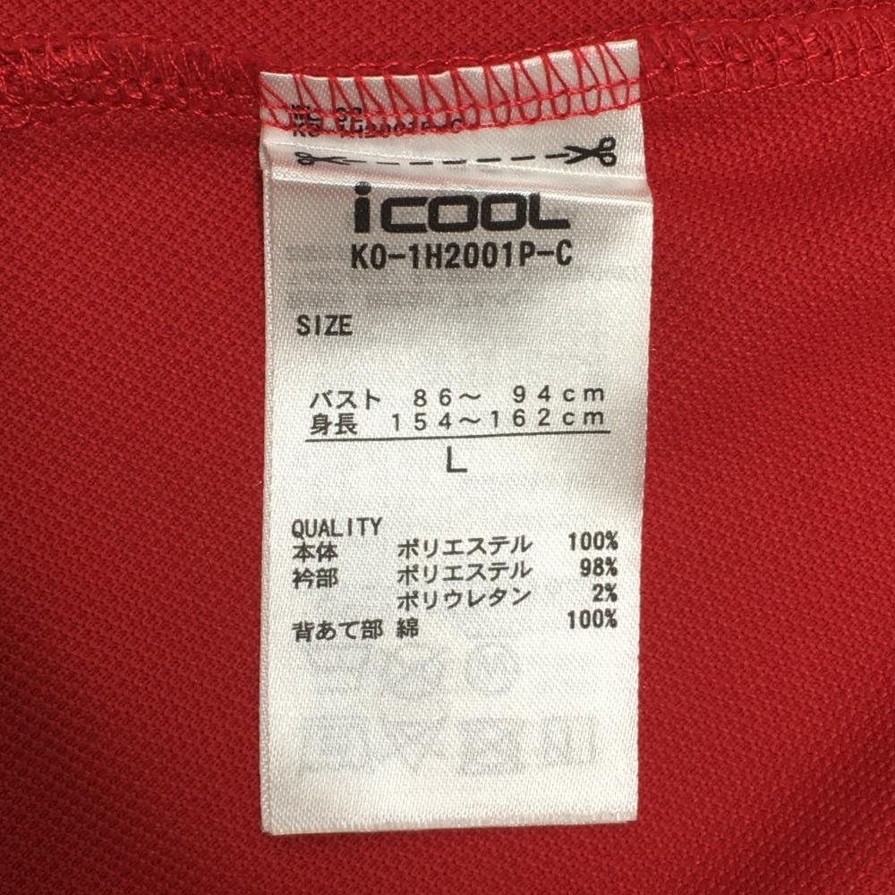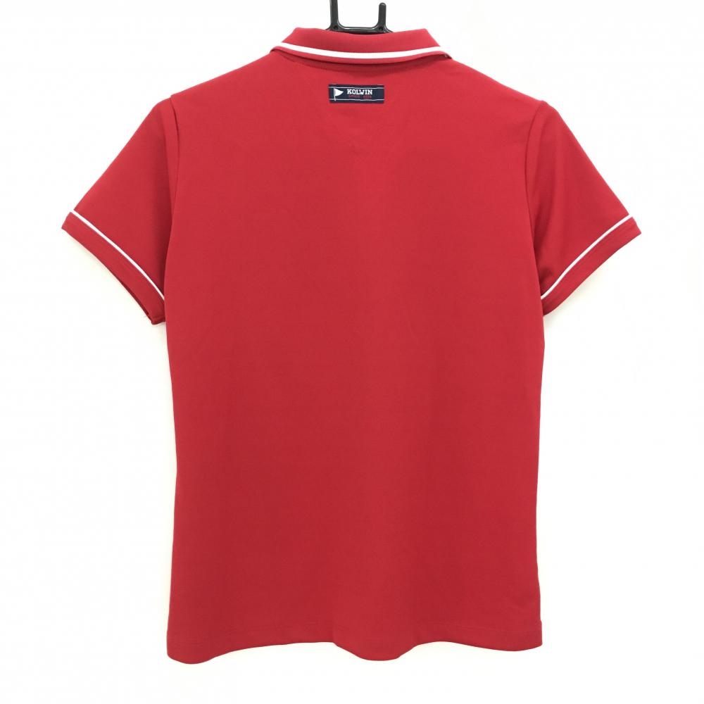 【美品】コルウィン 半袖ポロシャツ レッド×白 襟ライン 胸元刺しゅう レディース L ゴルフウェア Kolwin