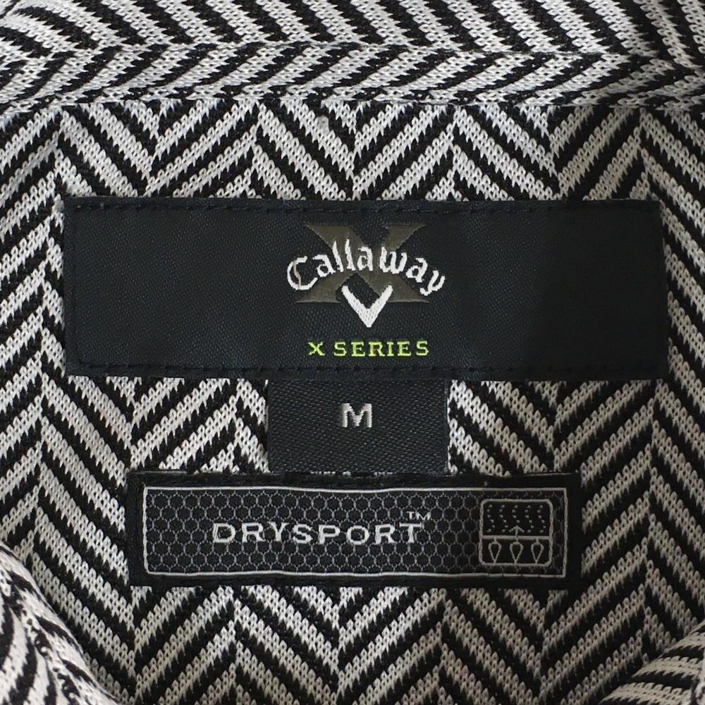 【美品】キャロウェイ 半袖ポロシャツ ライトグレー×黒 ヘリンボーン柄 ロゴ刺しゅう メンズ M ゴルフウェア Callaway