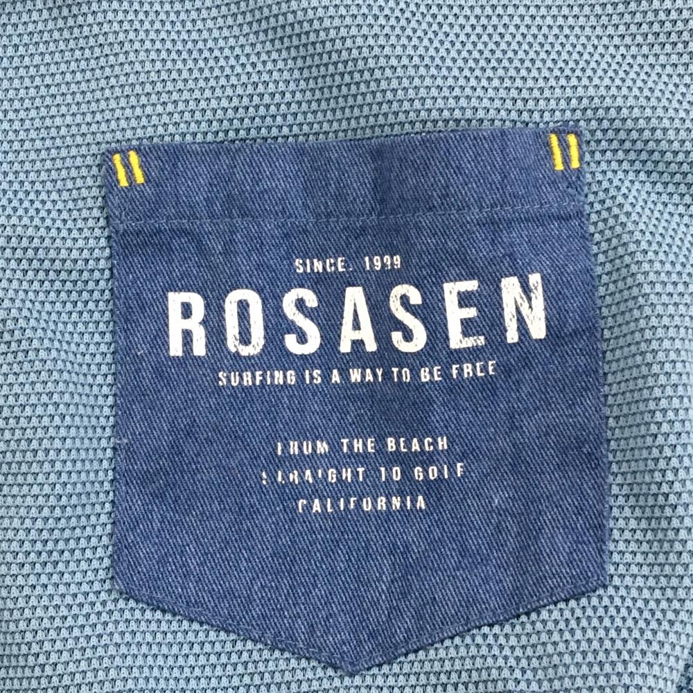 【超美品】ロサーセン 半袖ポロシャツ ライトブルー 織生地 胸ポケット レディース L ゴルフウェア Rosasen