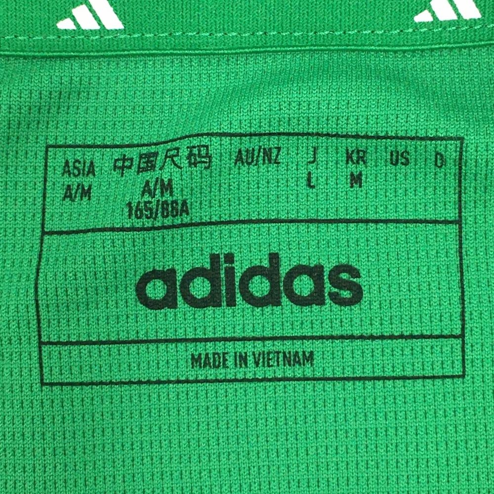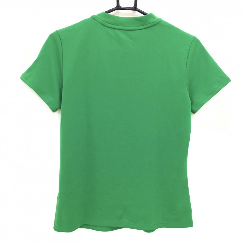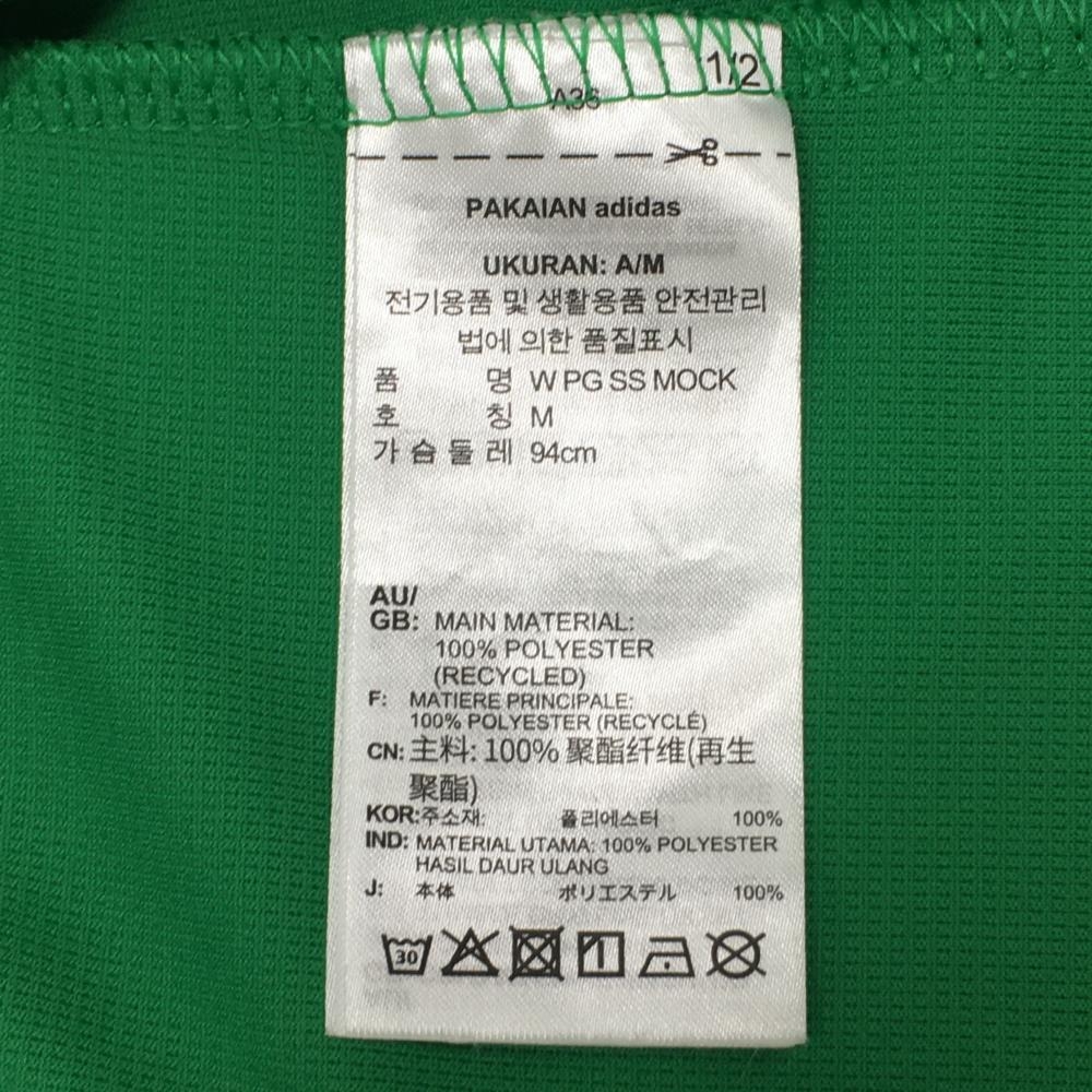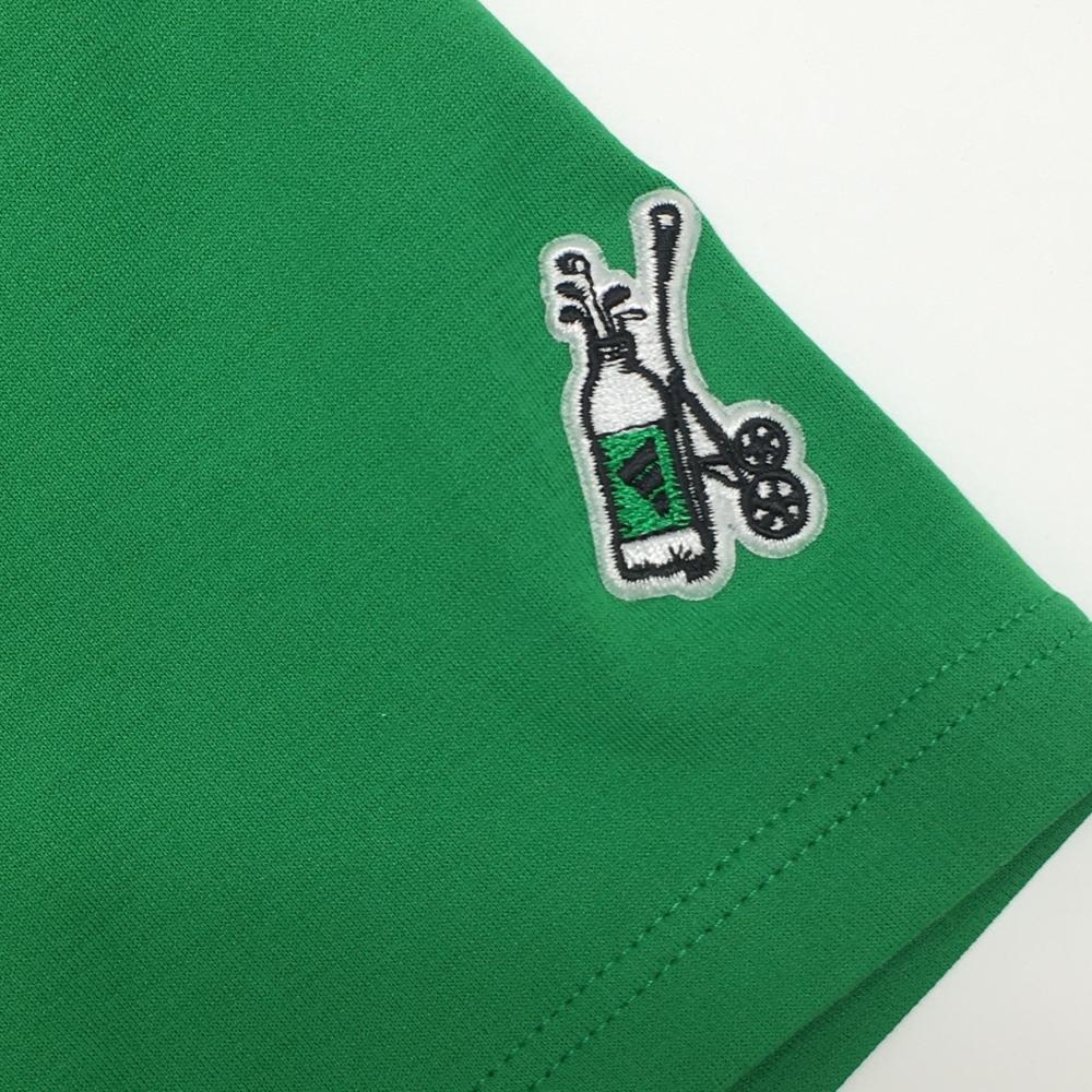 【超美品】アディダス Tシャツ グリーン×白 胸プリント ネックロゴ刺しゅう レディース L ゴルフウェア adidas