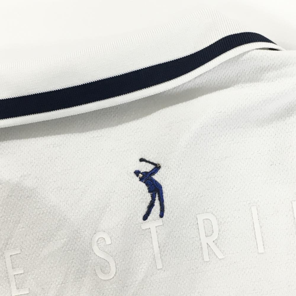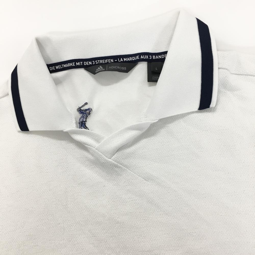 【超美品】アディダス 半袖スキッパーシャツ 白×ネイビー 襟ライン 後ろネック下刺しゅう メンズ L ゴルフウェア adidas