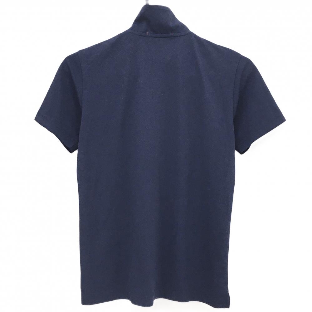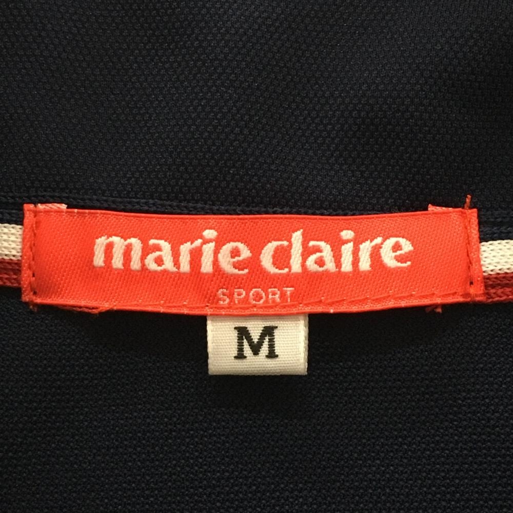 【超美品】マリクレールスポール 半袖ハイネックシャツ ネイビー×白 ロゴ刺しゅう ハーフジップ レディース M ゴルフウェア marie claire