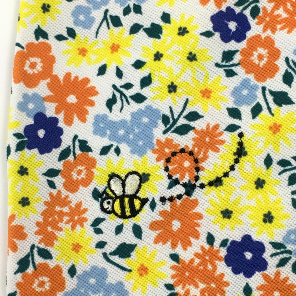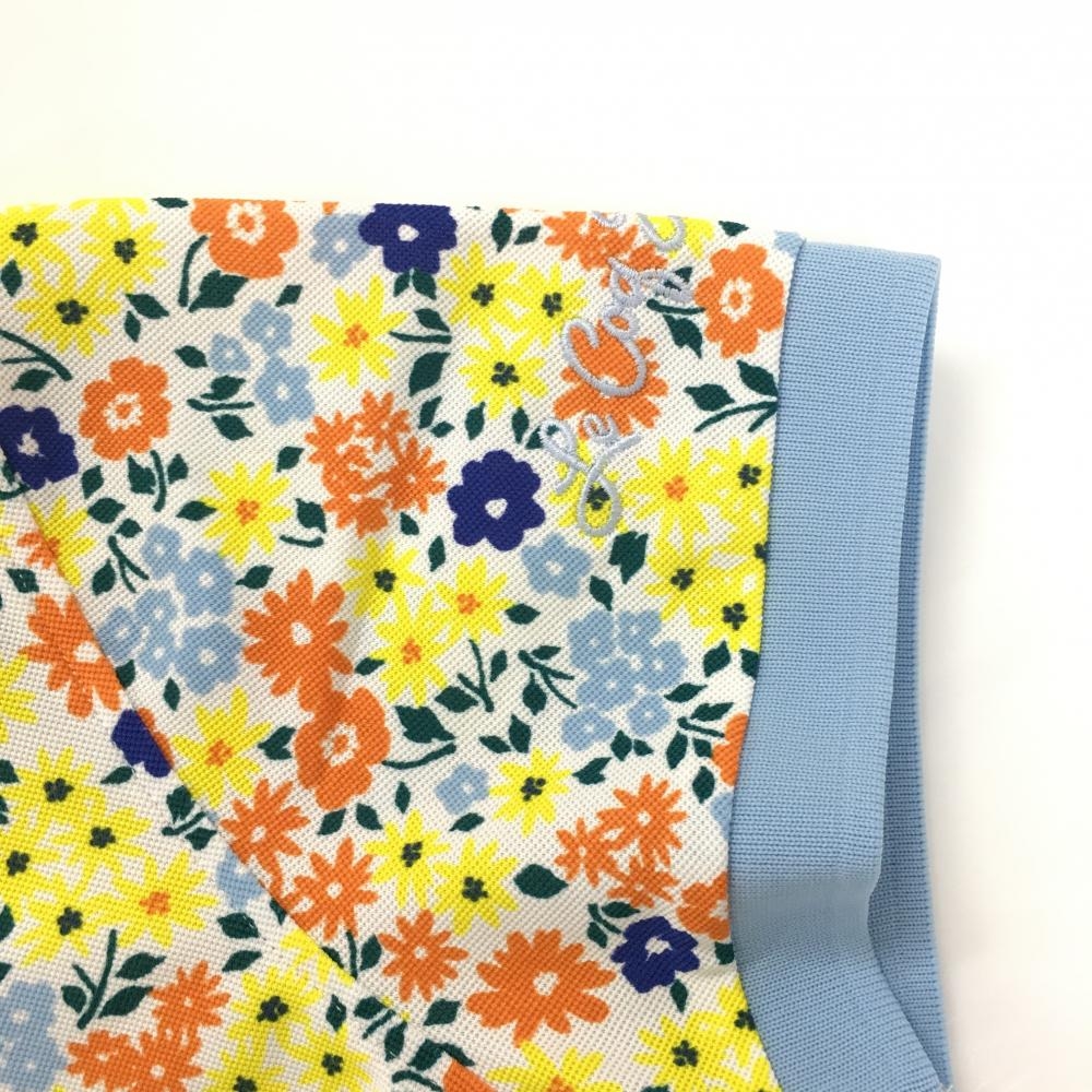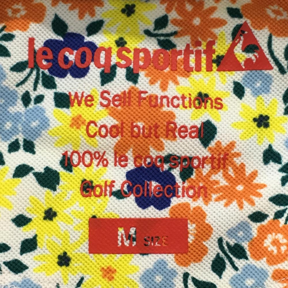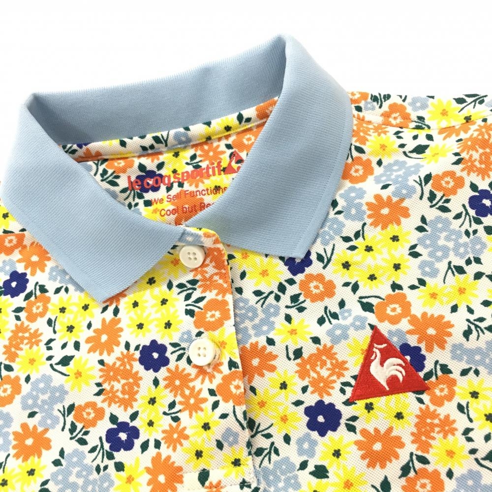 【美品】ルコックゴルフ 半袖ポロシャツ 白×マルチカラー×ライトブルー 花柄 ロゴ刺しゅう レディース M ゴルフウェア le coq sportif