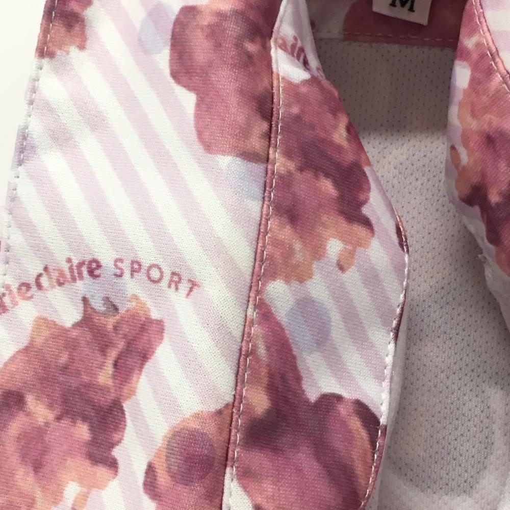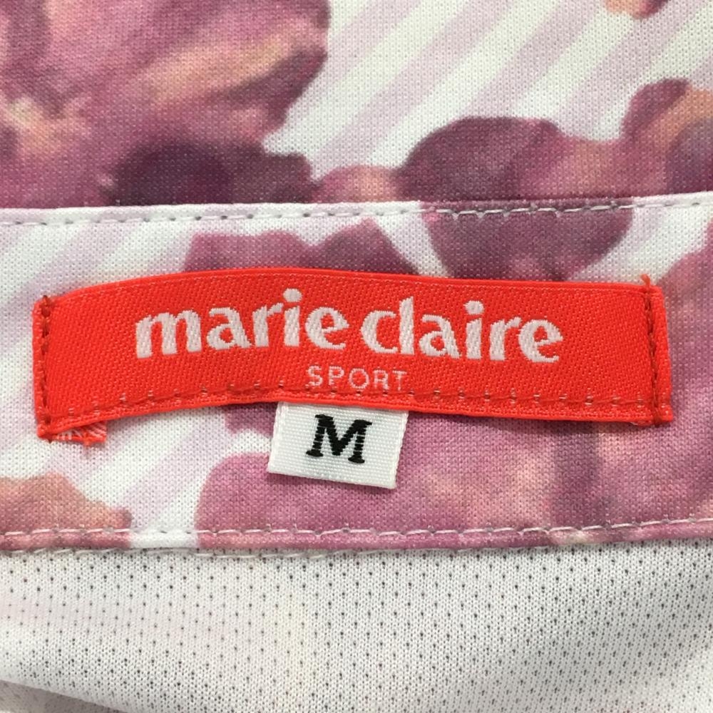【美品】マリクレールスポール 半袖ポロシャツ 白×パープルピンク 花柄 斜めストライプ レディース M ゴルフウェア marie claire