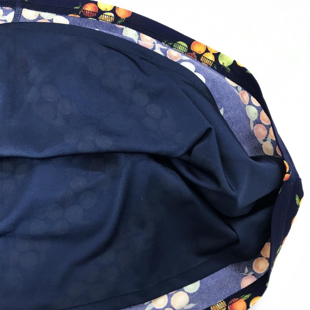 【超美品】キャロウェイ 半袖ポロワンピース ネイビー×オレンジ 果実柄 オレンジ ボーダー調 レディース M ゴルフウェア Callaway