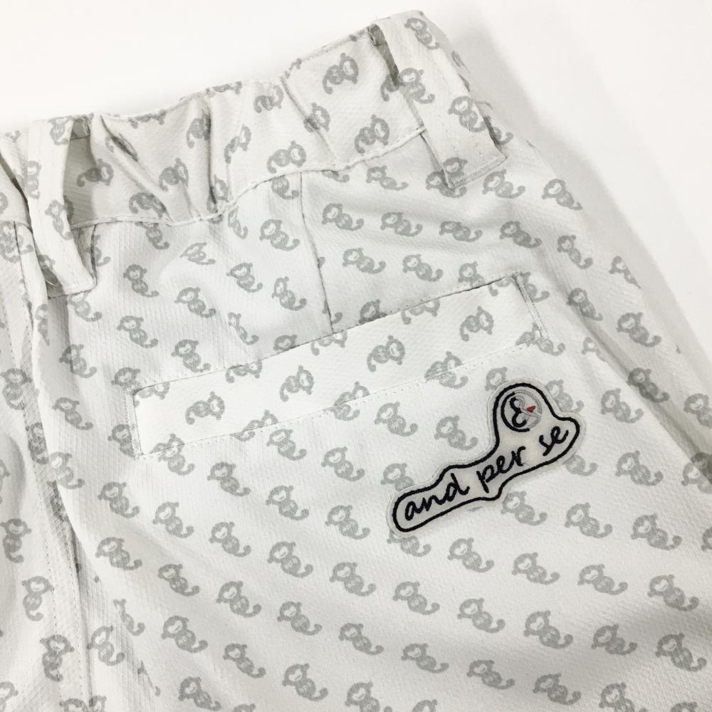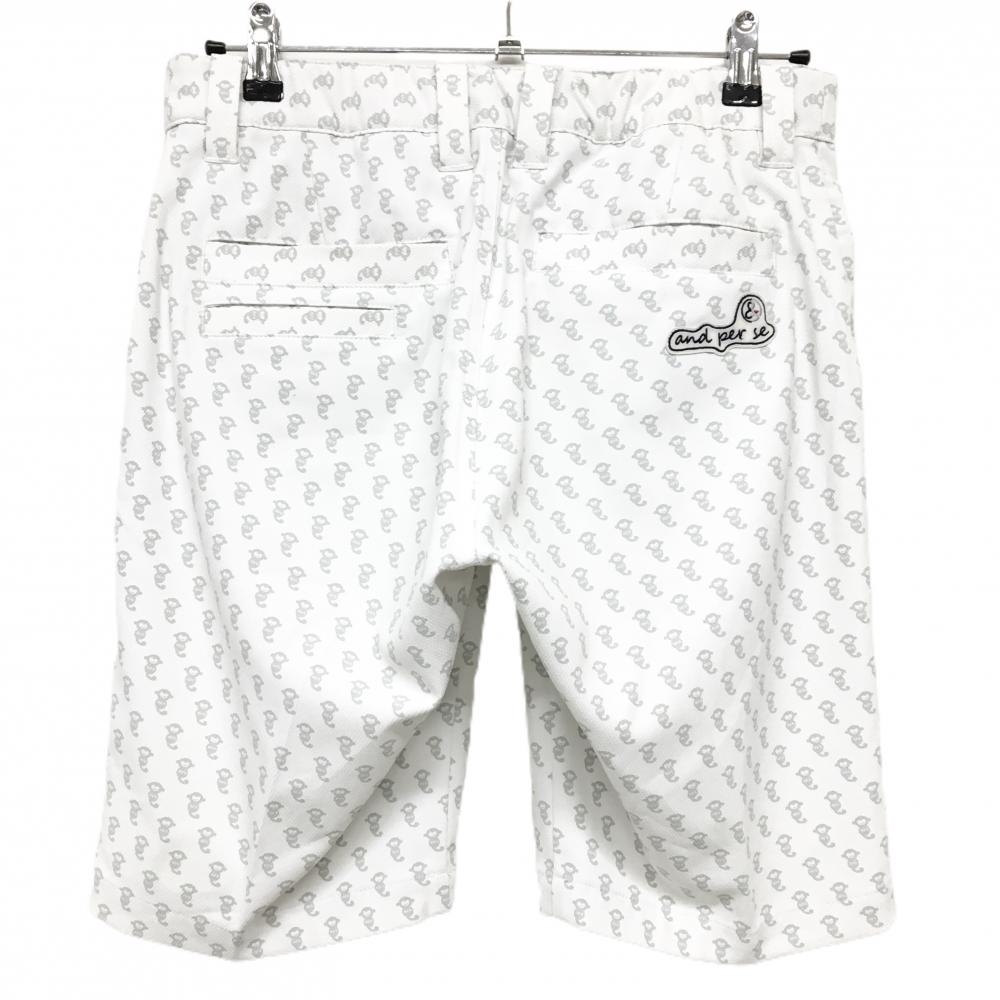 【美品】アンパスィ ハーフパンツ 白×ライトグレー アンパンジー総柄 メンズ M ゴルフウェア and per se