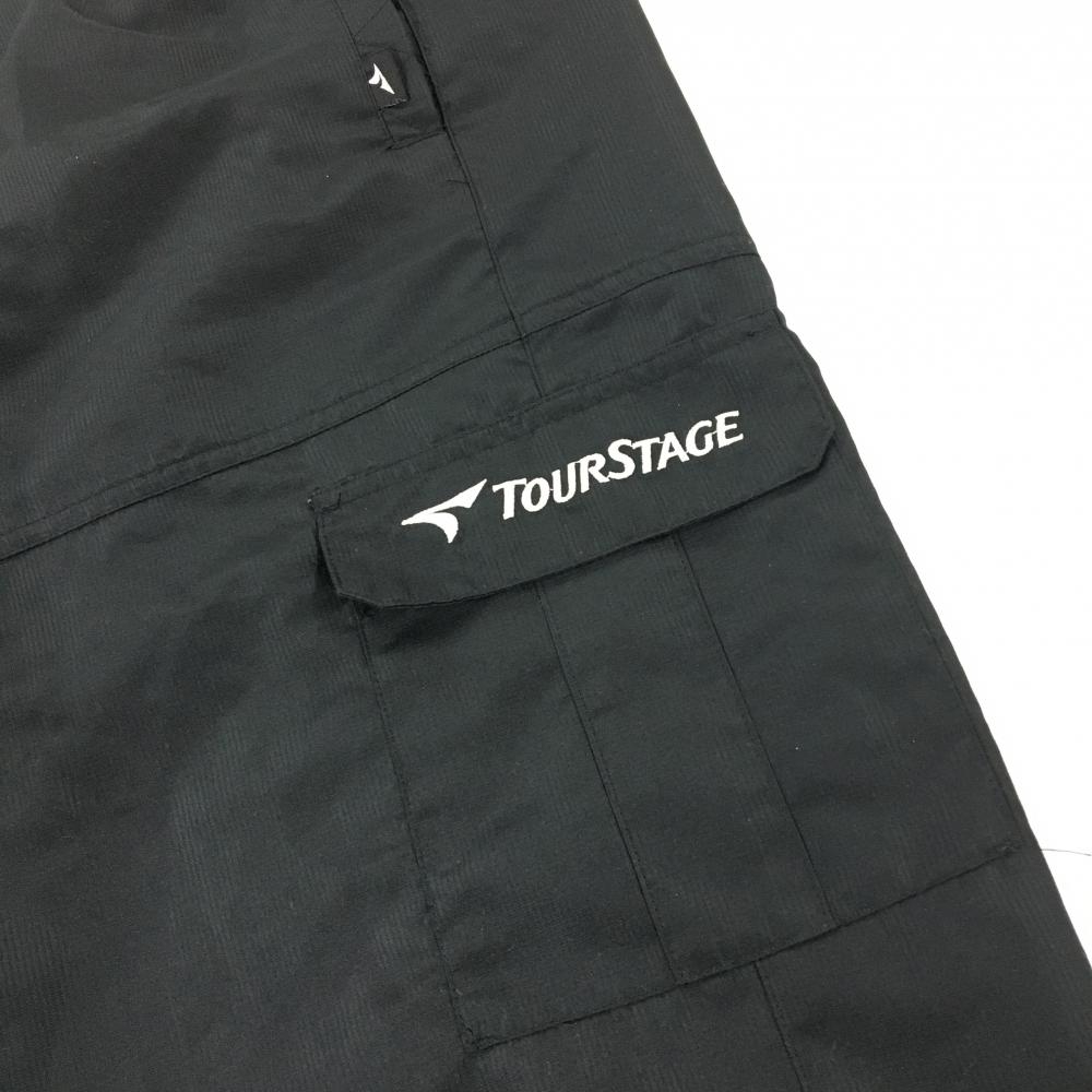 【美品】ツアーステージ ハーフパンツ 黒×白 地模様 ロゴ刺しゅう 複数ポケット 裏地メッシュ メンズ LL ゴルフウェア TOURSTAGE