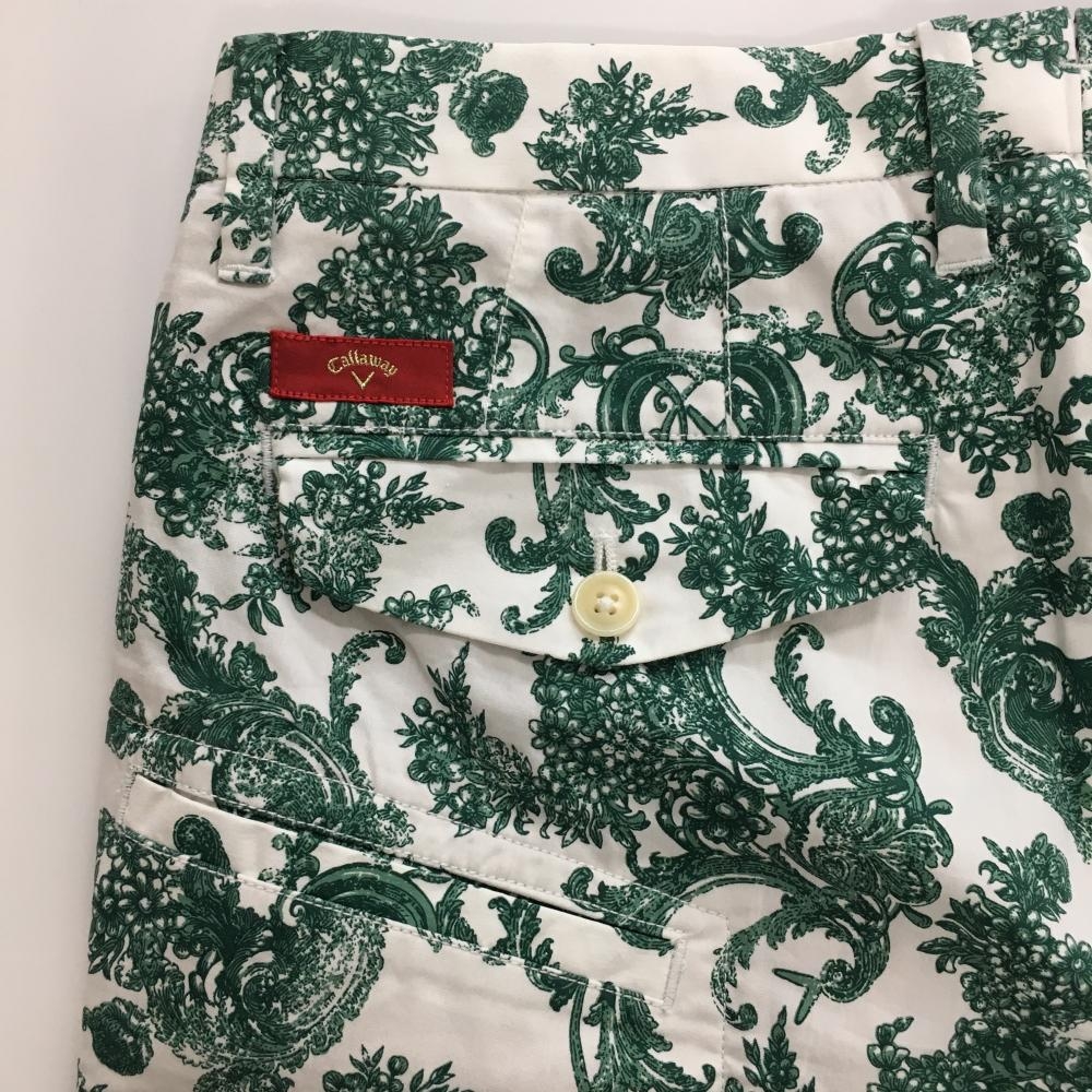 【美品】キャロウェイ レッドレーベル ハーフパンツ 白×グリーン系 総柄 ストレッチ メンズ M ゴルフウェア Callaway