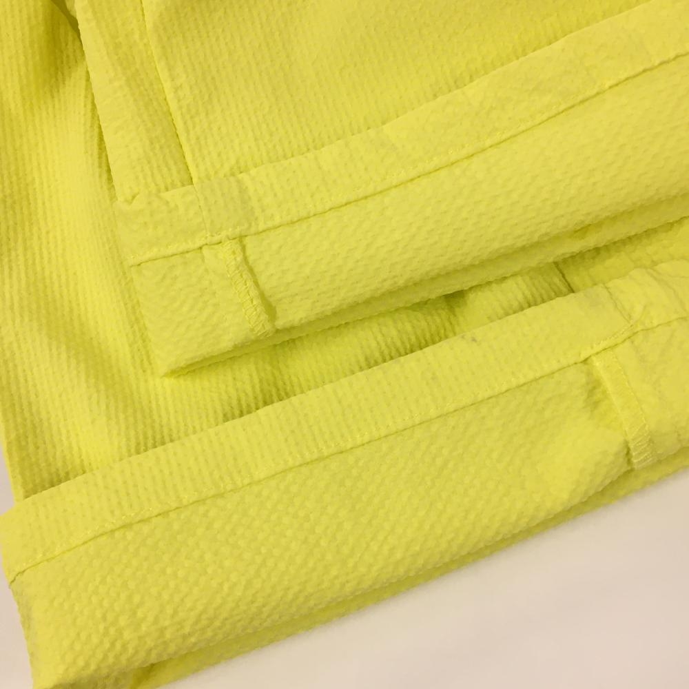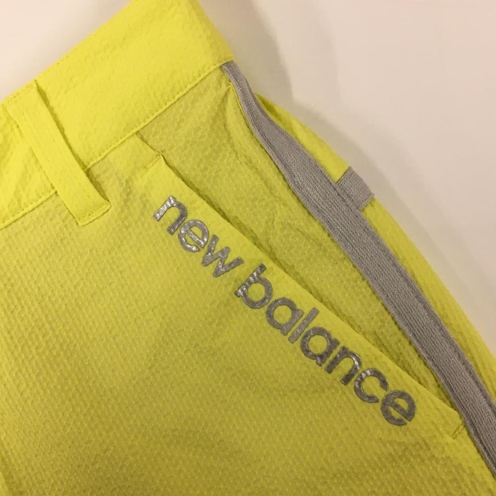 【美品】ニューバランスゴルフ パンツ イエロー×グレー 凹凸生地 サイドライン ストレッチ レディース 2(L) ゴルフウェア New Balance