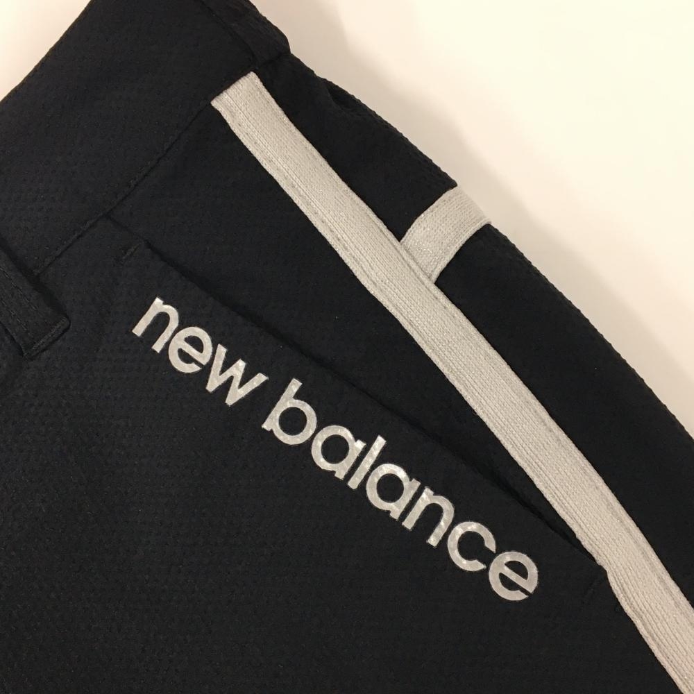 【超美品】ニューバランスゴルフ パンツ 黒×ライトグレー 凸凹生地 サイドライン ストレッチ レディース 2(L) ゴルフウェア New Balance